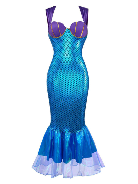 Purple 1930s Halloween Vampire Fish Scales Mermaid Dress