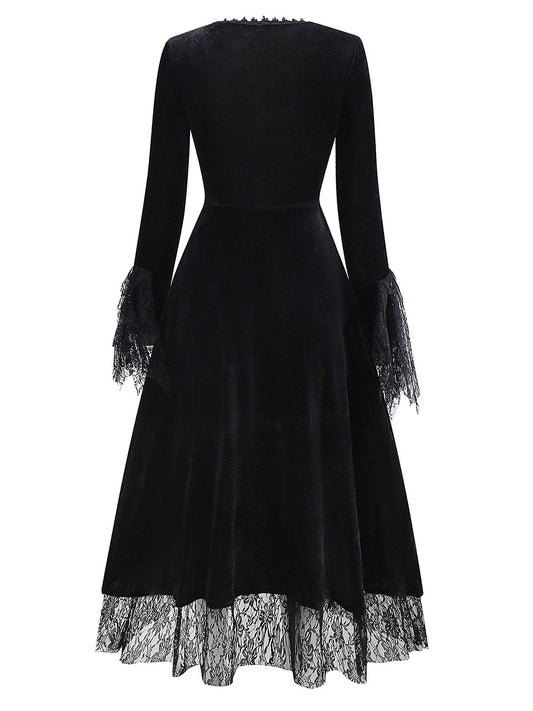 1930s Halloween Velvet Witch Batwing Sleeve Mermaid dress