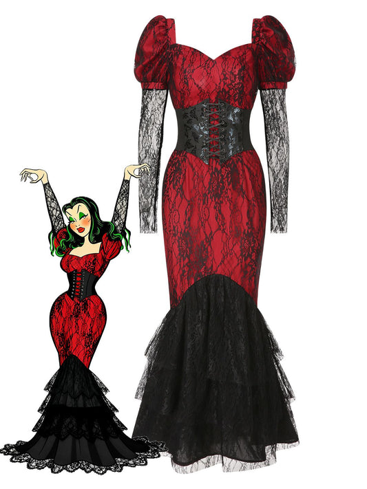Black 1930s Gothic Lace Halter Mermaid Dress