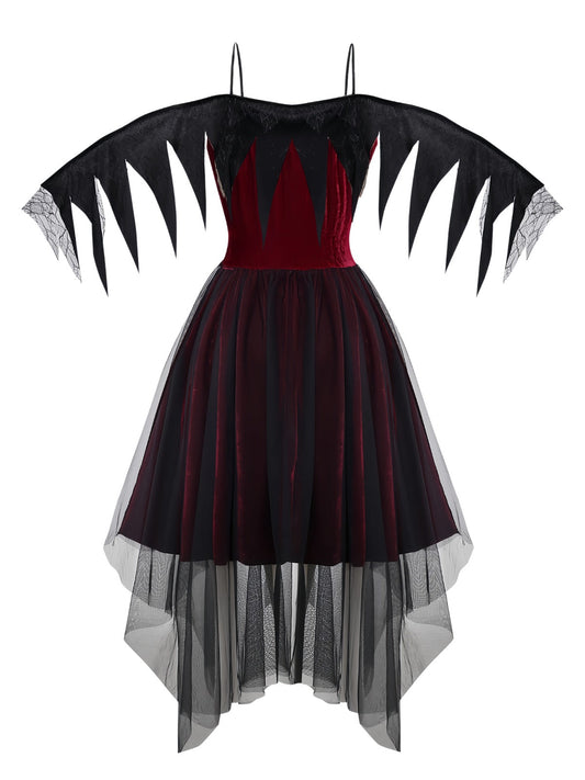 Burgundy 1960s Gothic Mesh Strapless Irregular Hem Dress