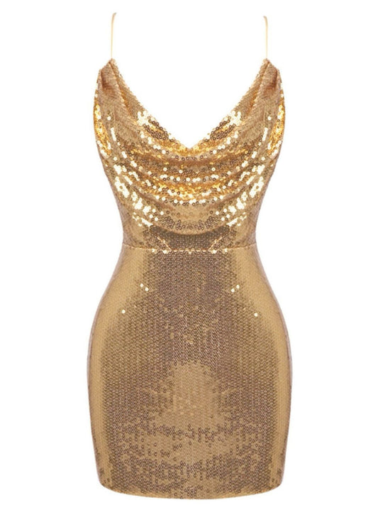 Blue 1970s Solid Sequined Elsa Cape & Dress