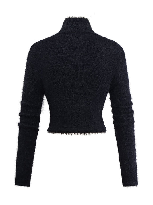 Black 1970s Halloween Pumpkin Faux Mink Sweater