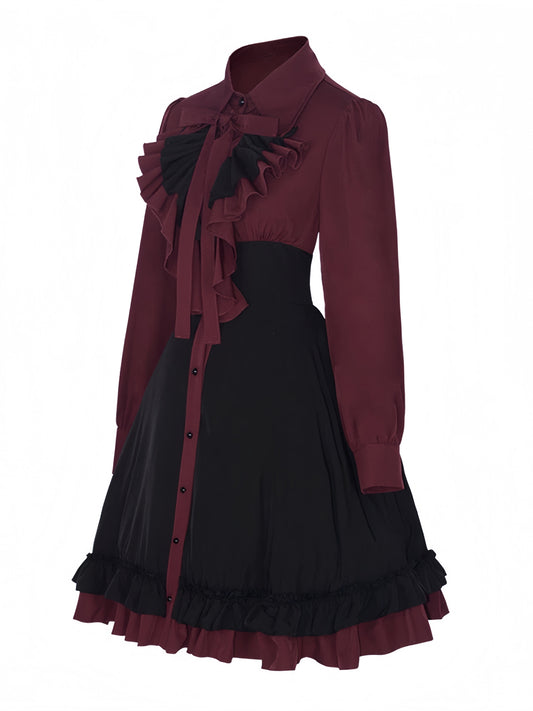 1950s Gothic Victorian Ruffled Bow Dress