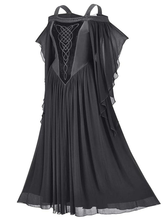 1950s Solid Velvet Mesh Cold Shoulder Dress