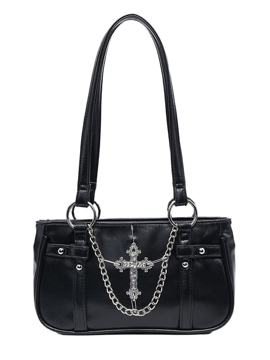 Black 1970s Gothic Cross Faux Leather Cami Top