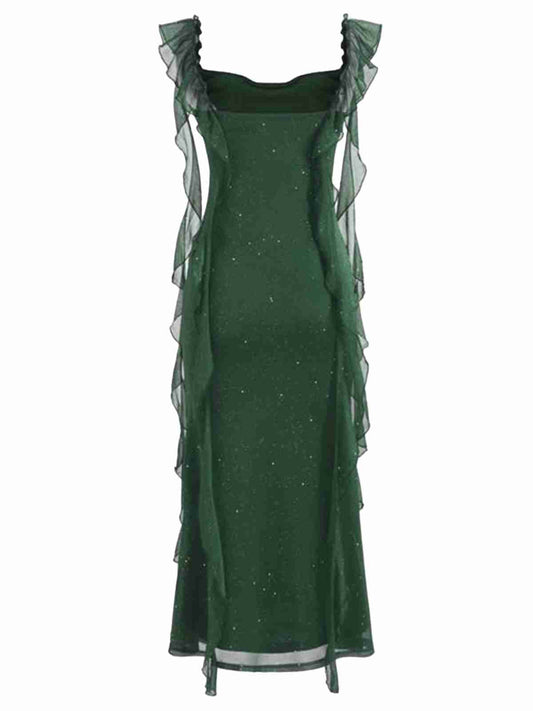 Green 1920s Sparkle Mesh Ruffle Backless Dress