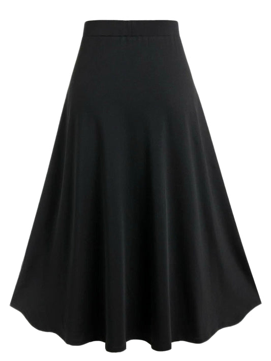 [Plus Size] 1970s Colorblock Lace-Up High-Waist Skirt