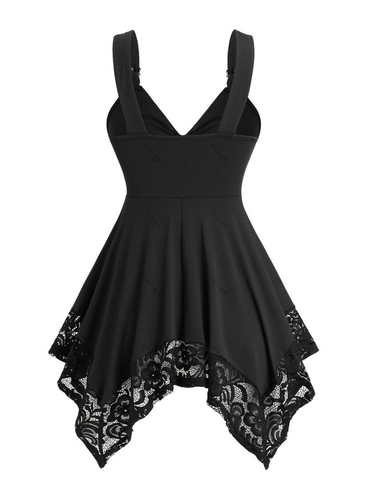 [Plus Size] Black 1970s Solid Heart Button Lace Tunic Top