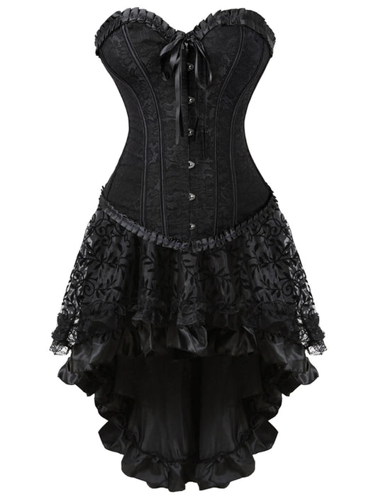 2PCS 1970s Steampunk Lace Corset & High Low Skirt