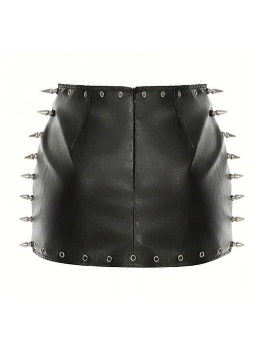 Black 1970s Gothic Punk Spike Leather Mini Skirt