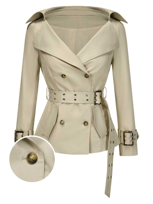 [Pre-Sale] Khaki 1980s Lapel Double-Breasted Belted Jacket