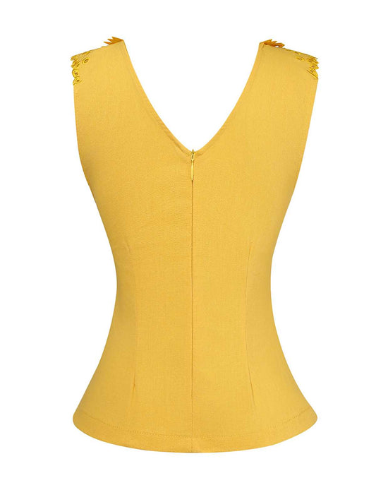 Yellow 1960s Cutout Floral Sleeveless Blouse