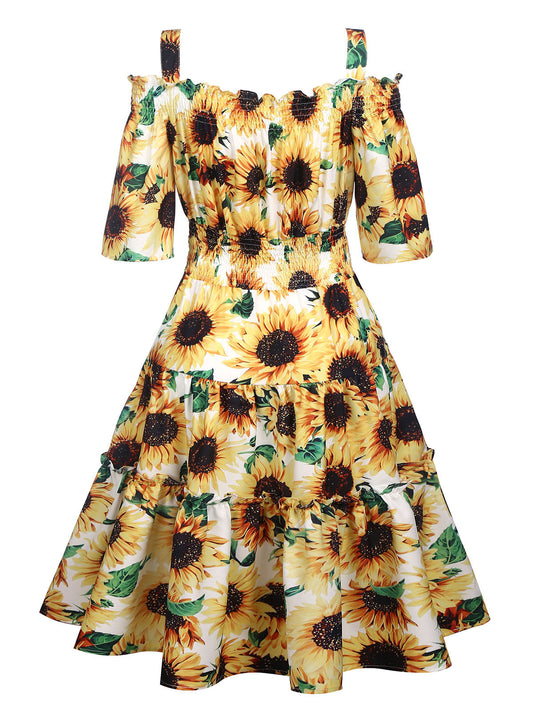 SAVE 57%Yellow 1950s Strap Bat Swing Dress