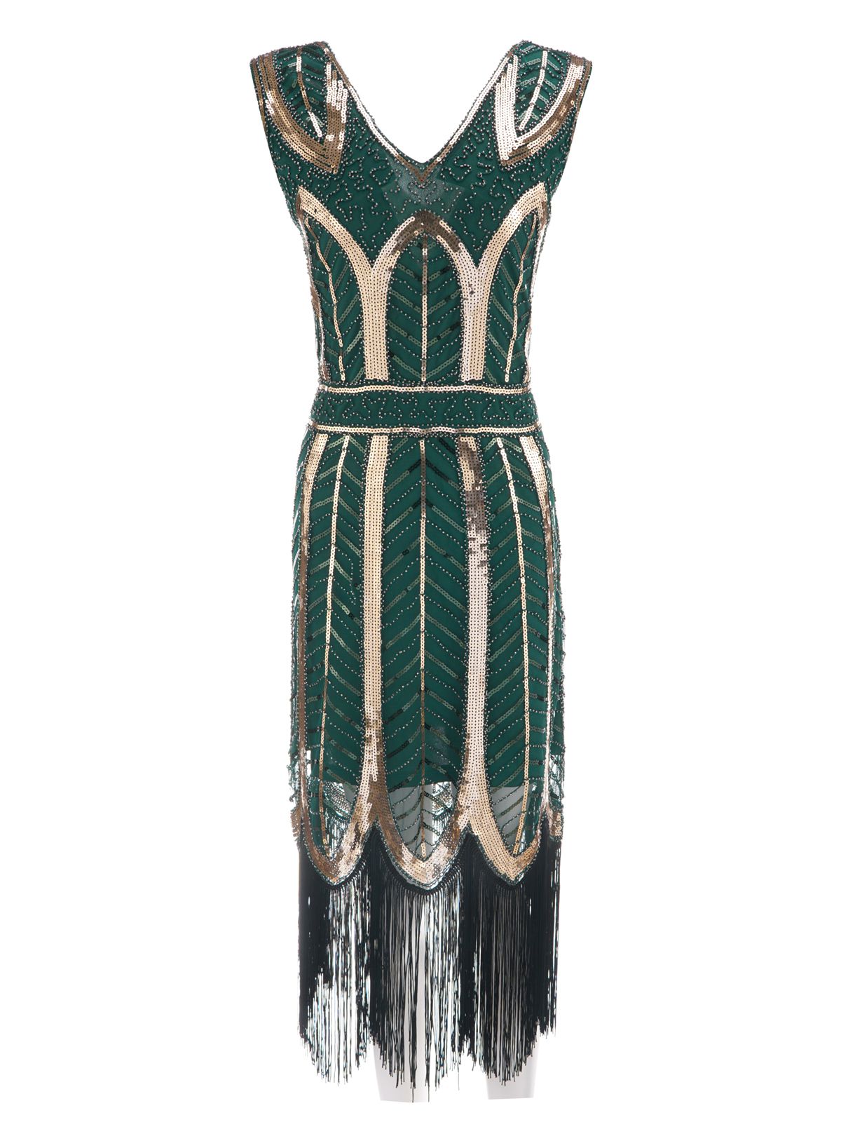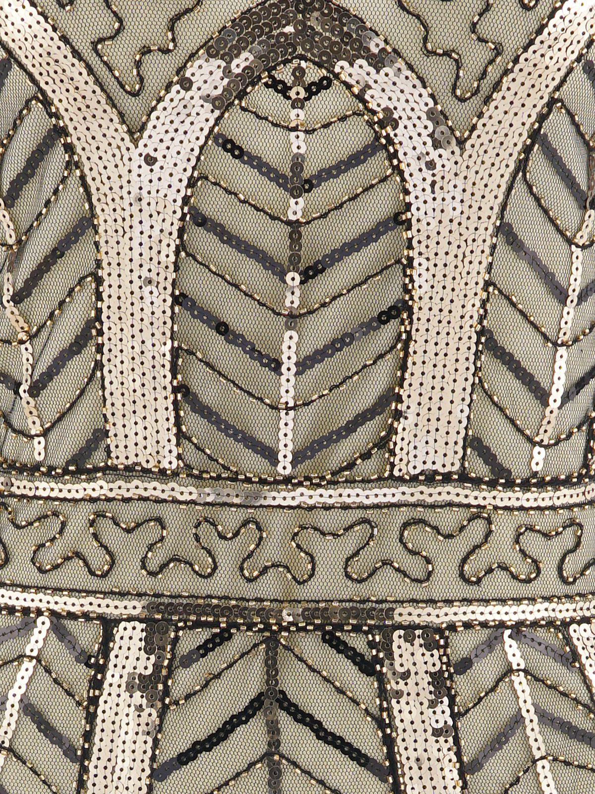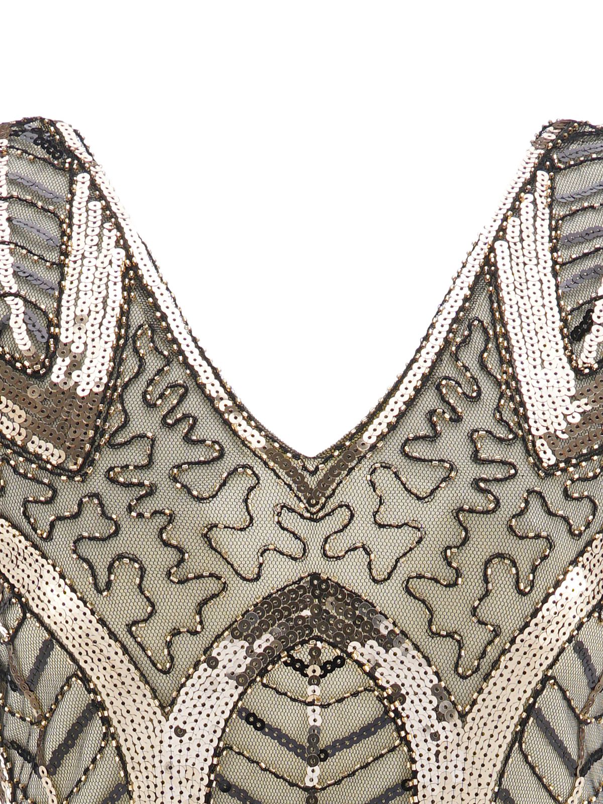 Show off some opulence, darling! A twinkling array of apricot sequins curl throughout your feminine silhouette. With a bit of royalty and aristocratic detail, this flapper dress is fresh from Retro Stage in stunning 1920s design.