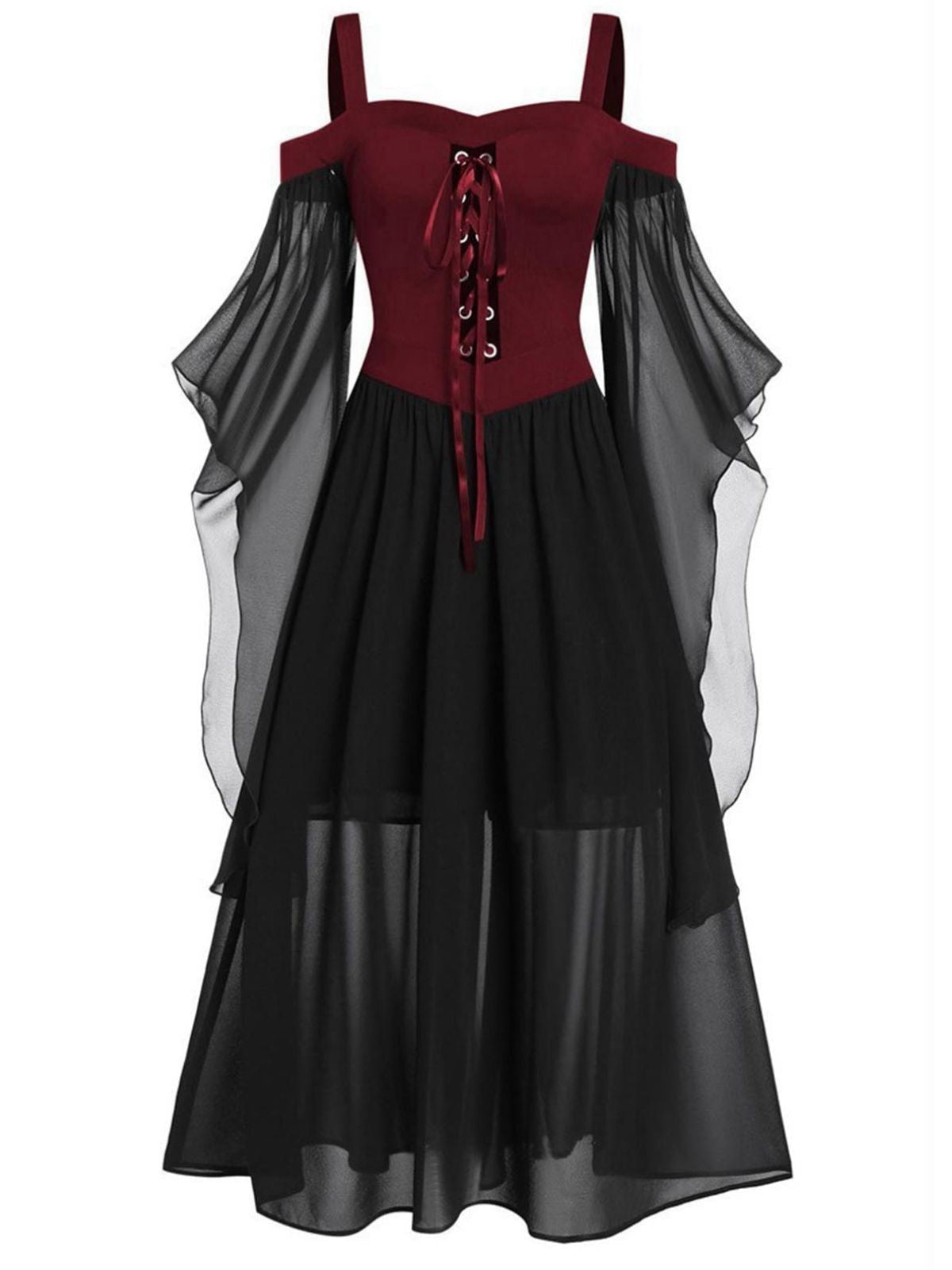 1950s Halloween Witch Transparent Sleeves Strap Dress