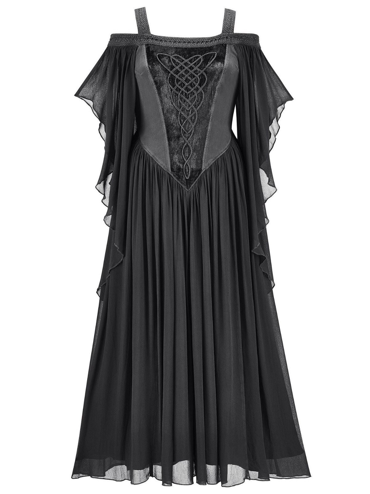 1950s Solid Velvet Mesh Cold Shoulder Dress