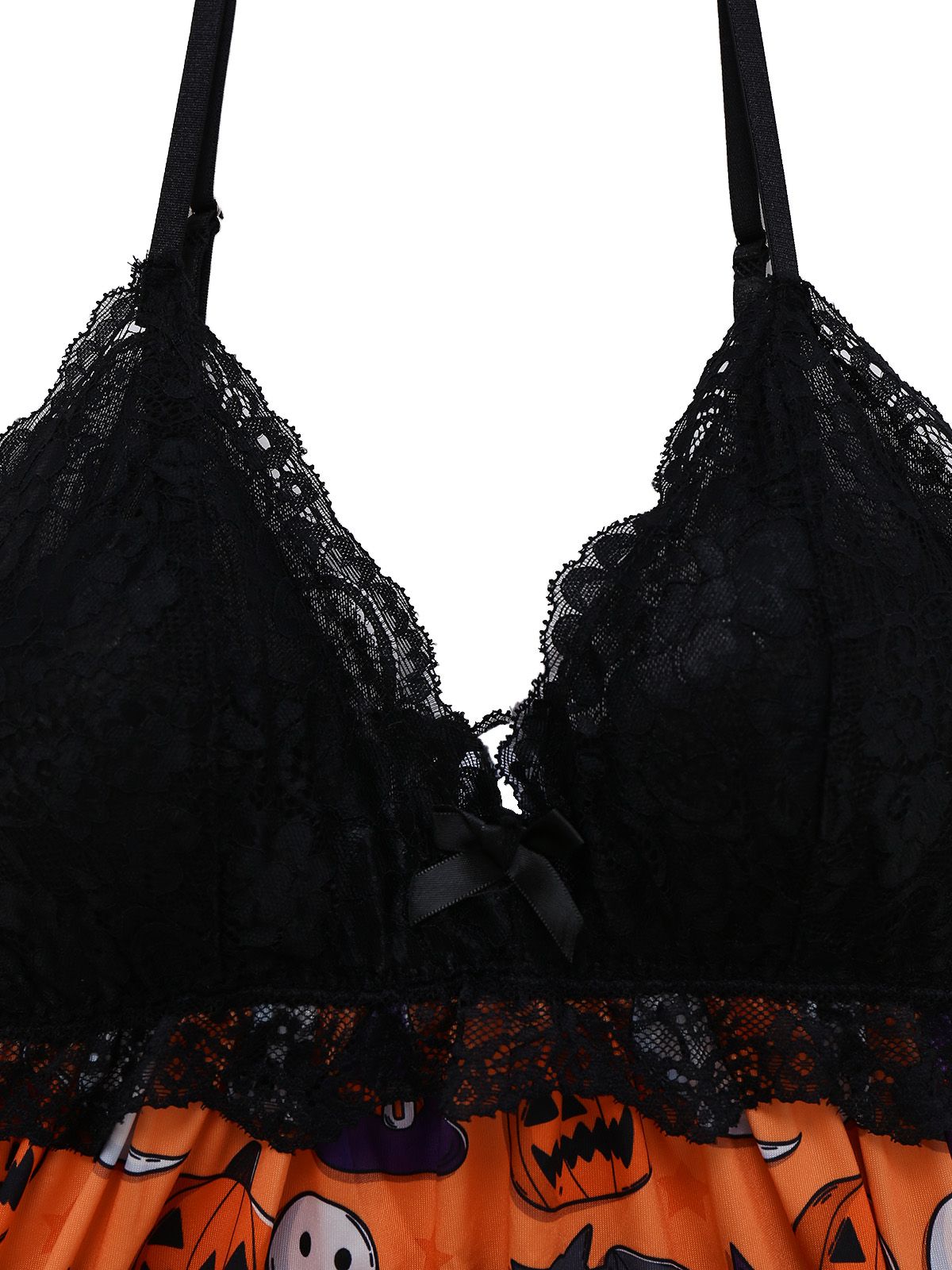 1960s Halloween Print Lace Patchwork Sleepwear
