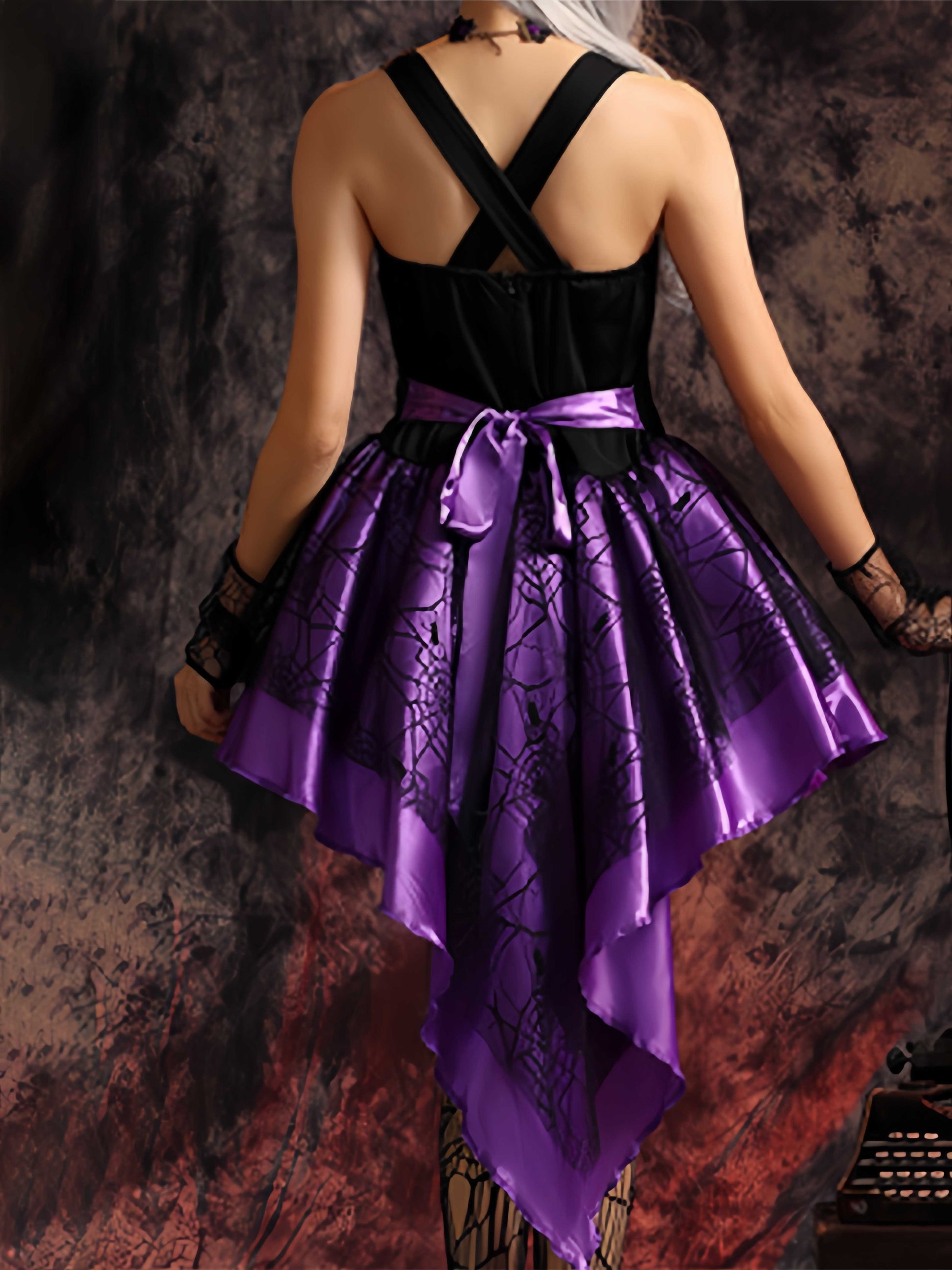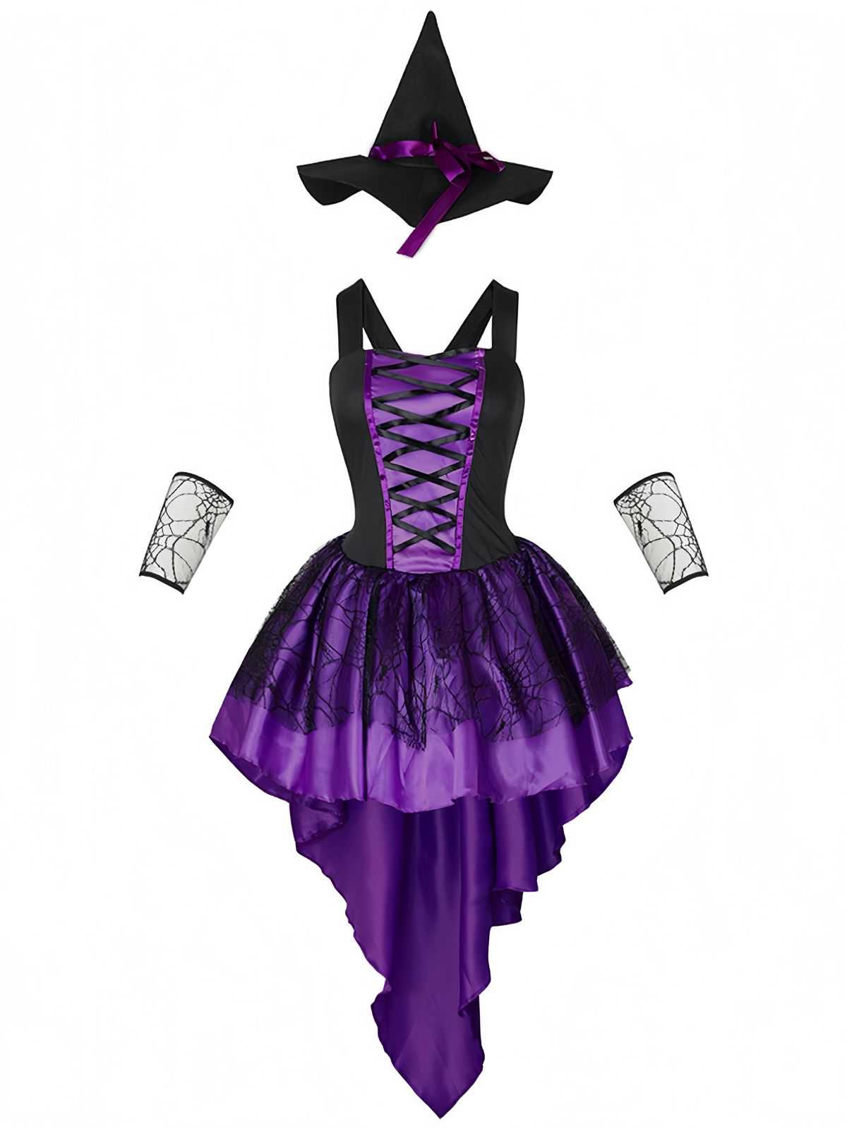 1970s Halloween Spiderweb Lace Witch Costume Set