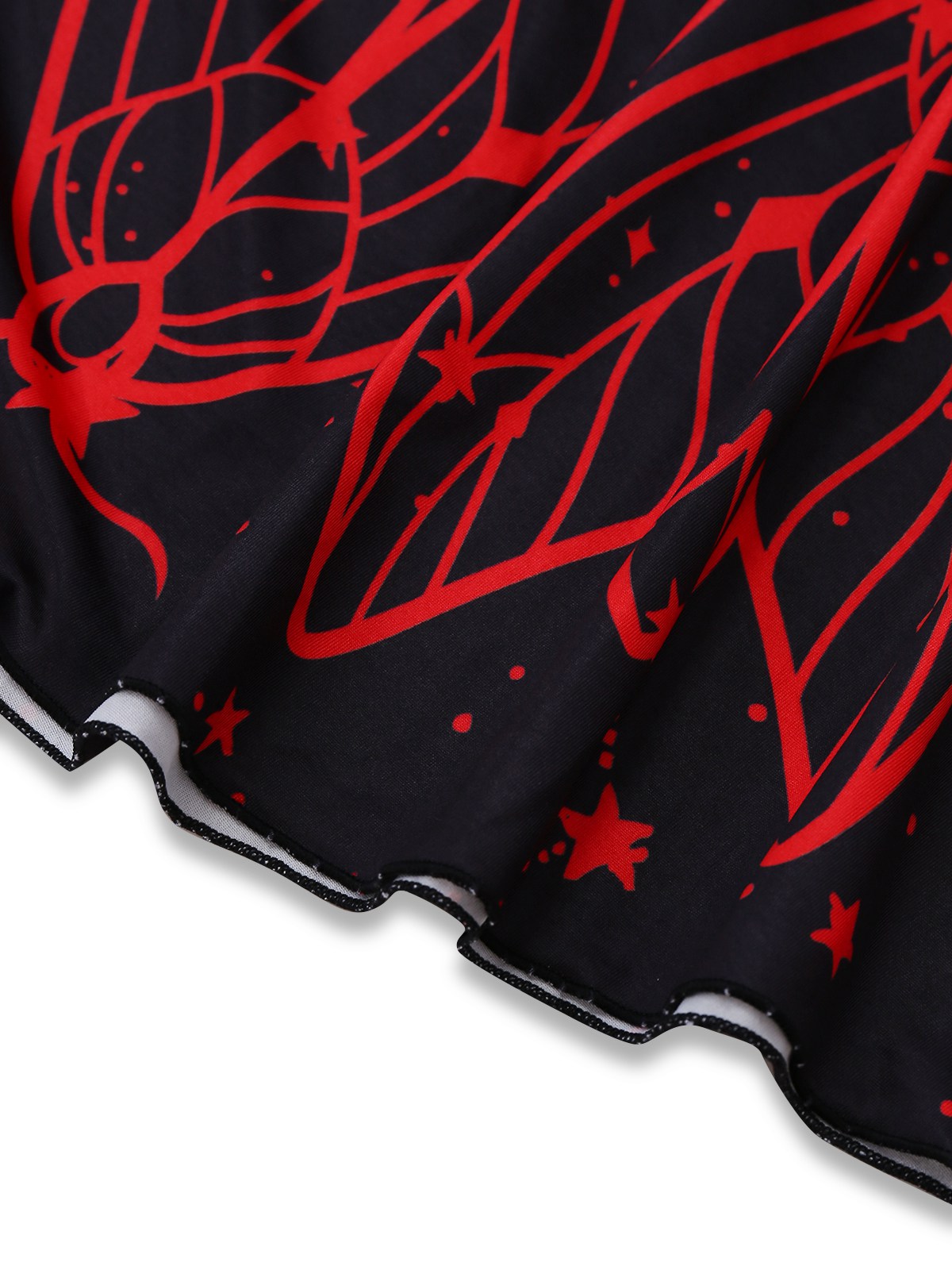 1980s Gothic Witch Bat Sleeve Hooded Dress