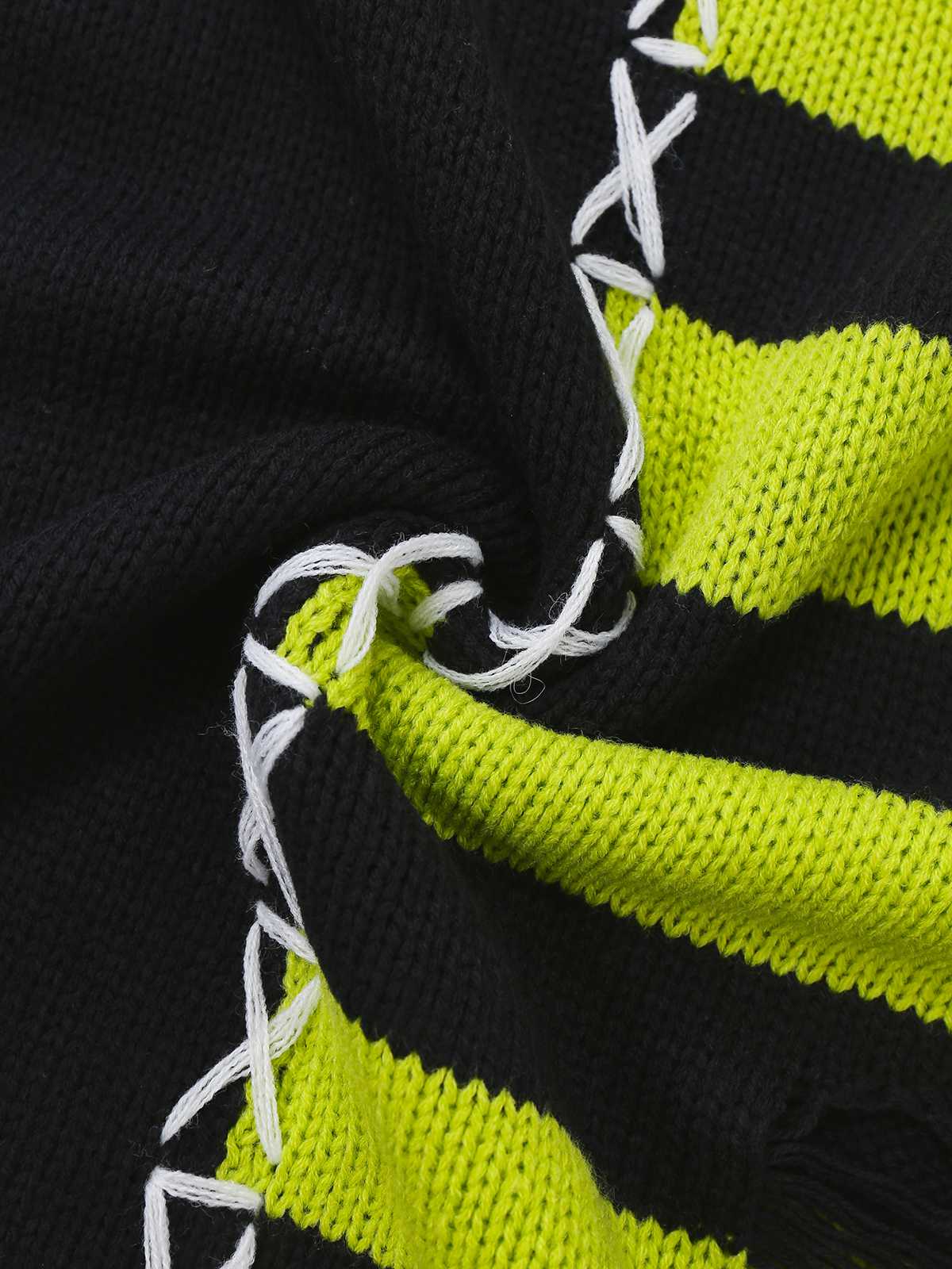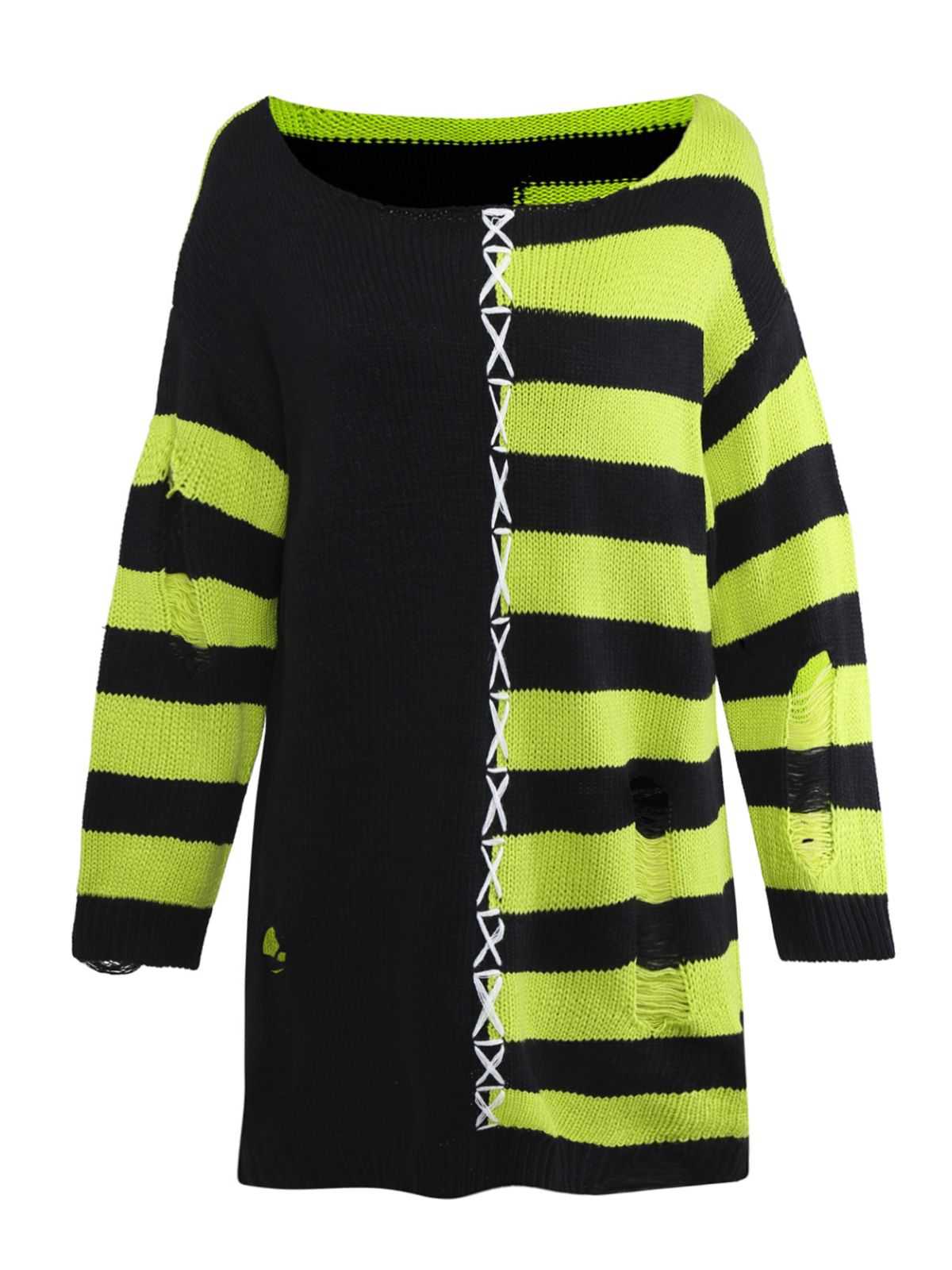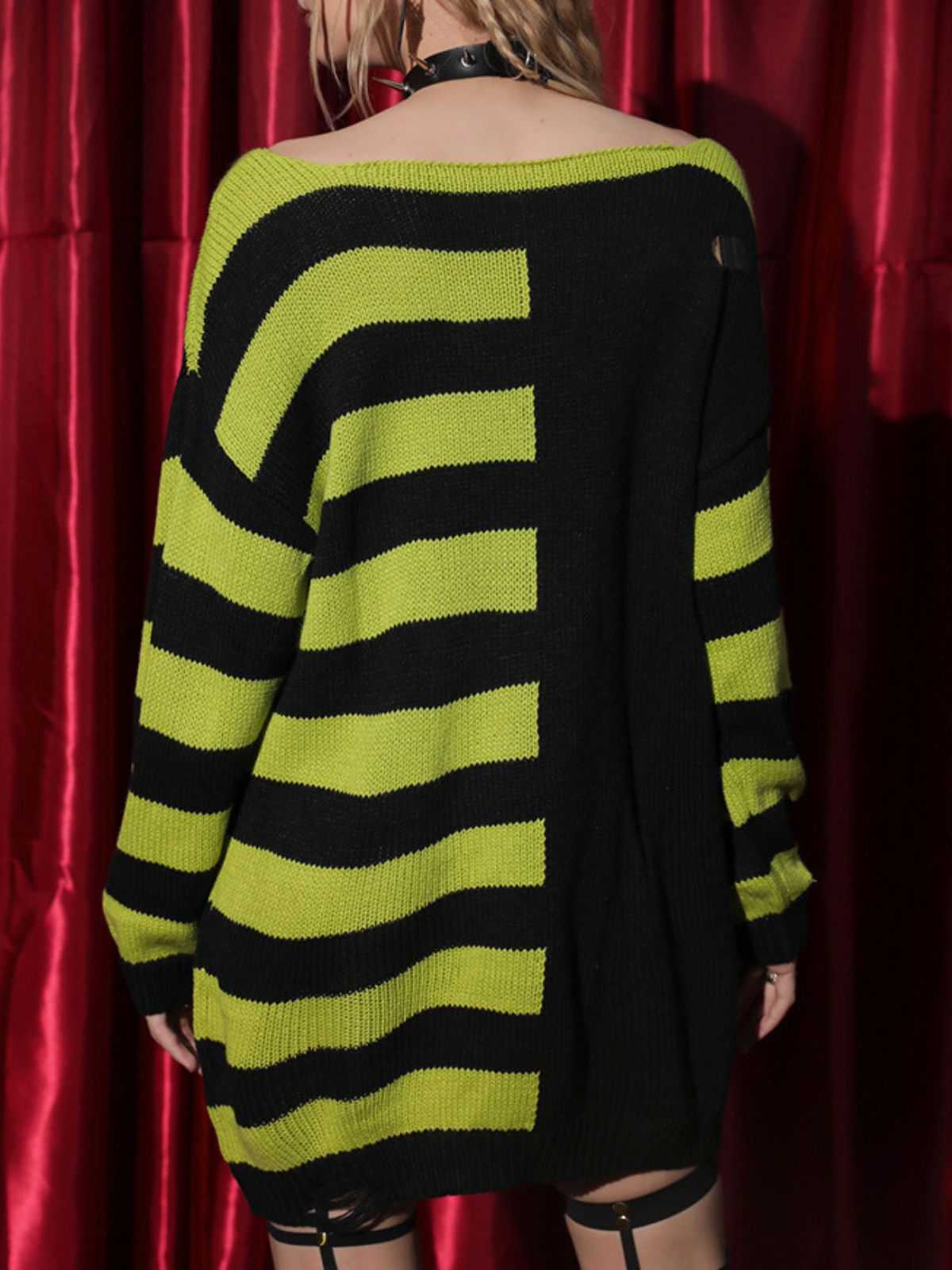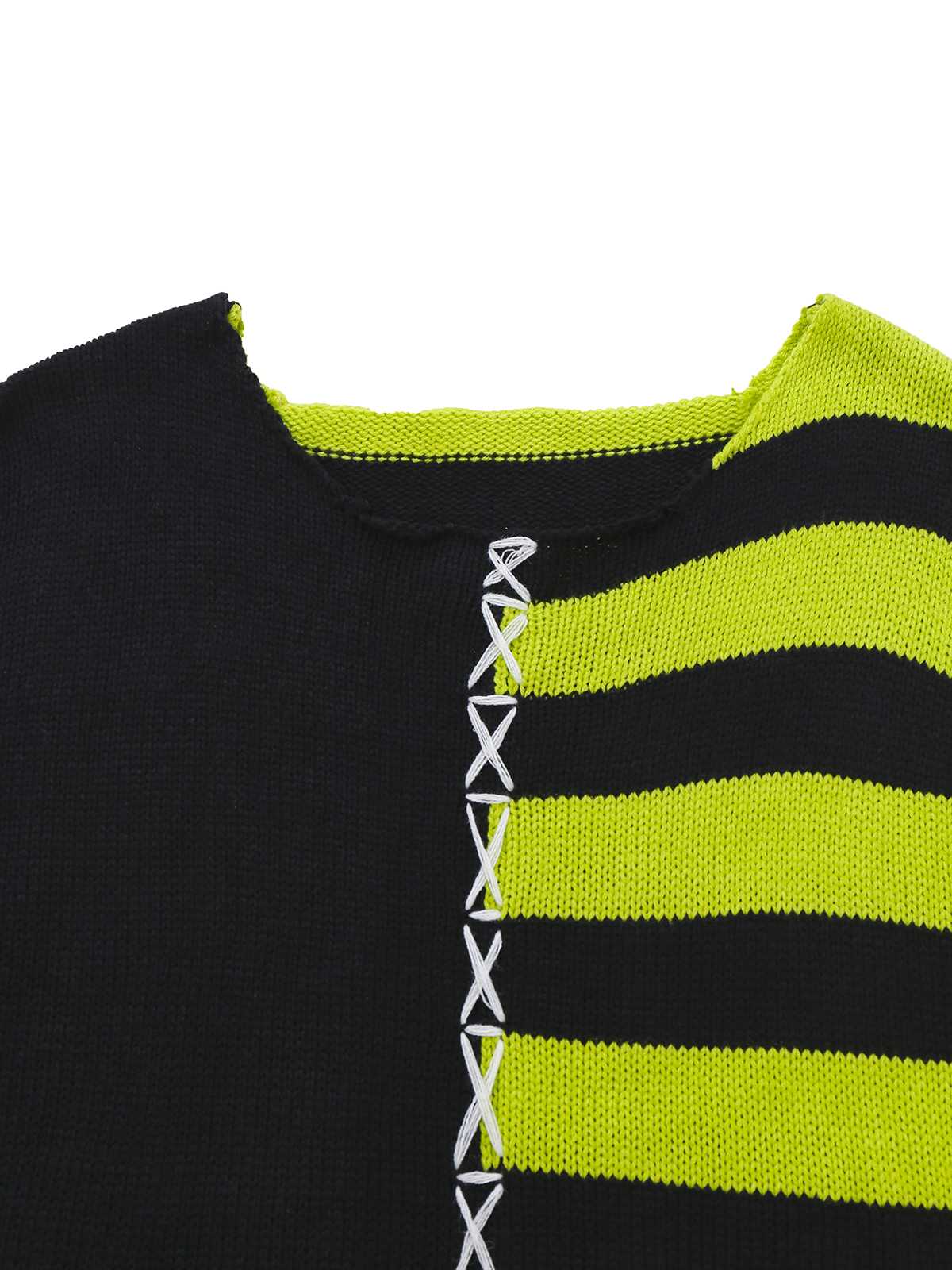1980s Halloween Lace-Up Striped Distressed Knit Sweater