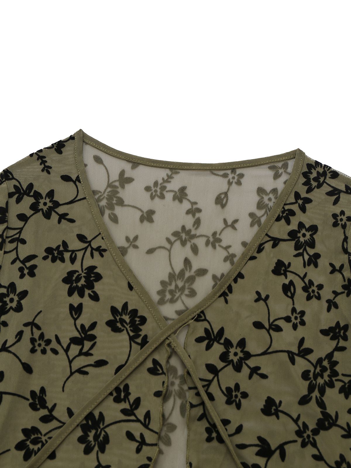 1980s Sheer Botanical Print Lace-Up Cardigan