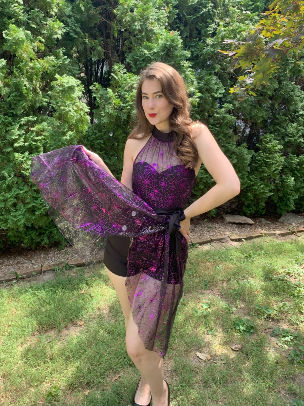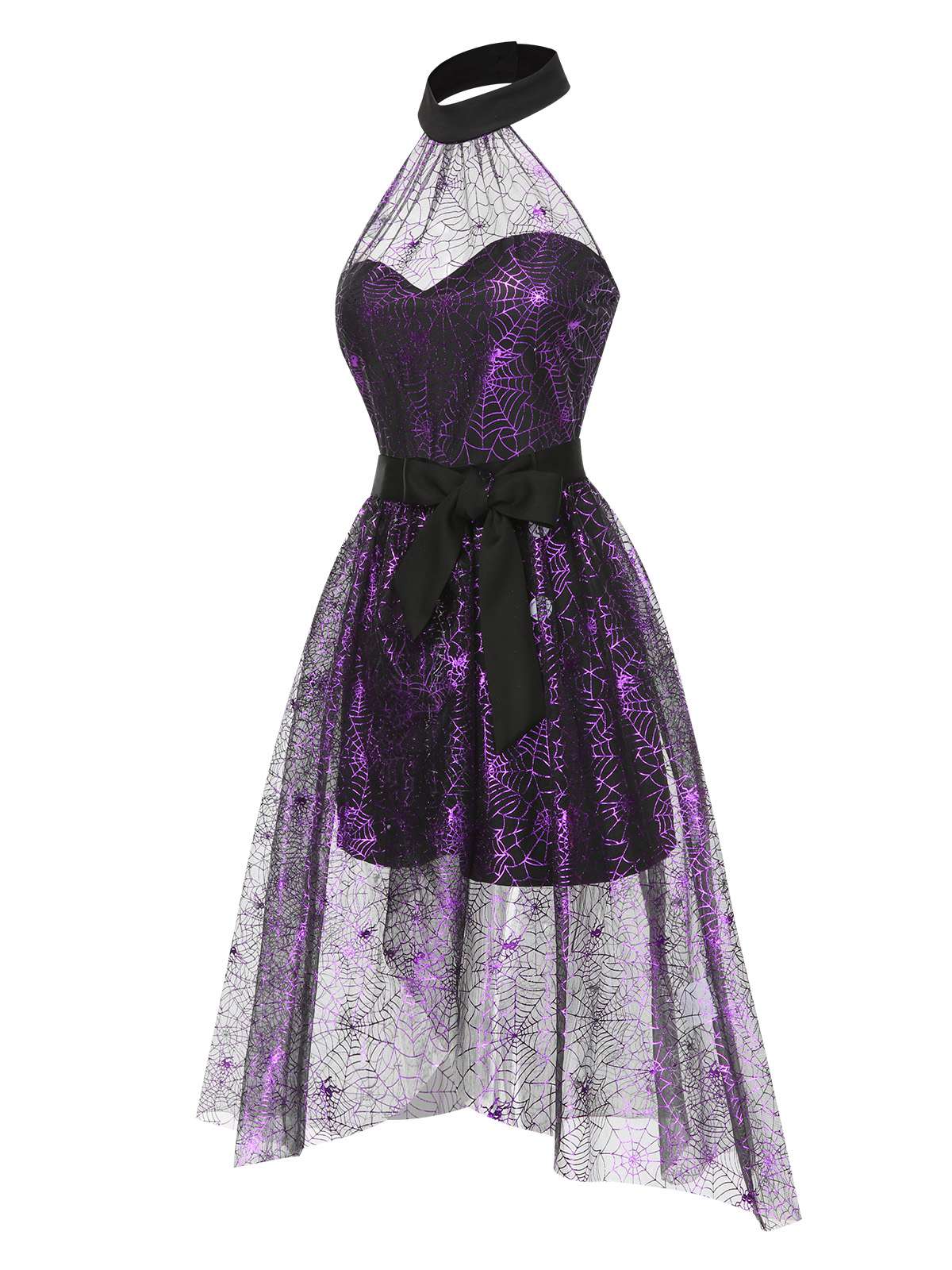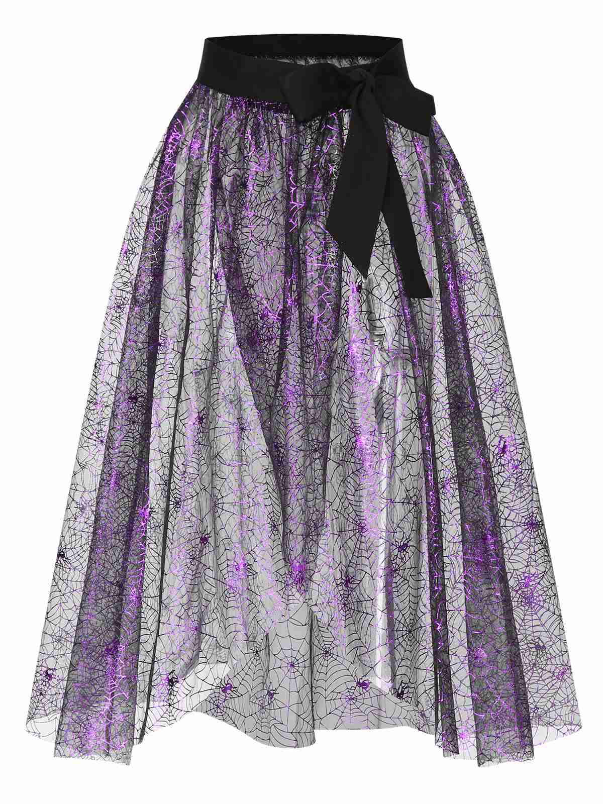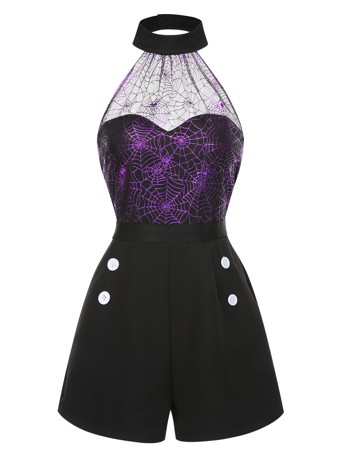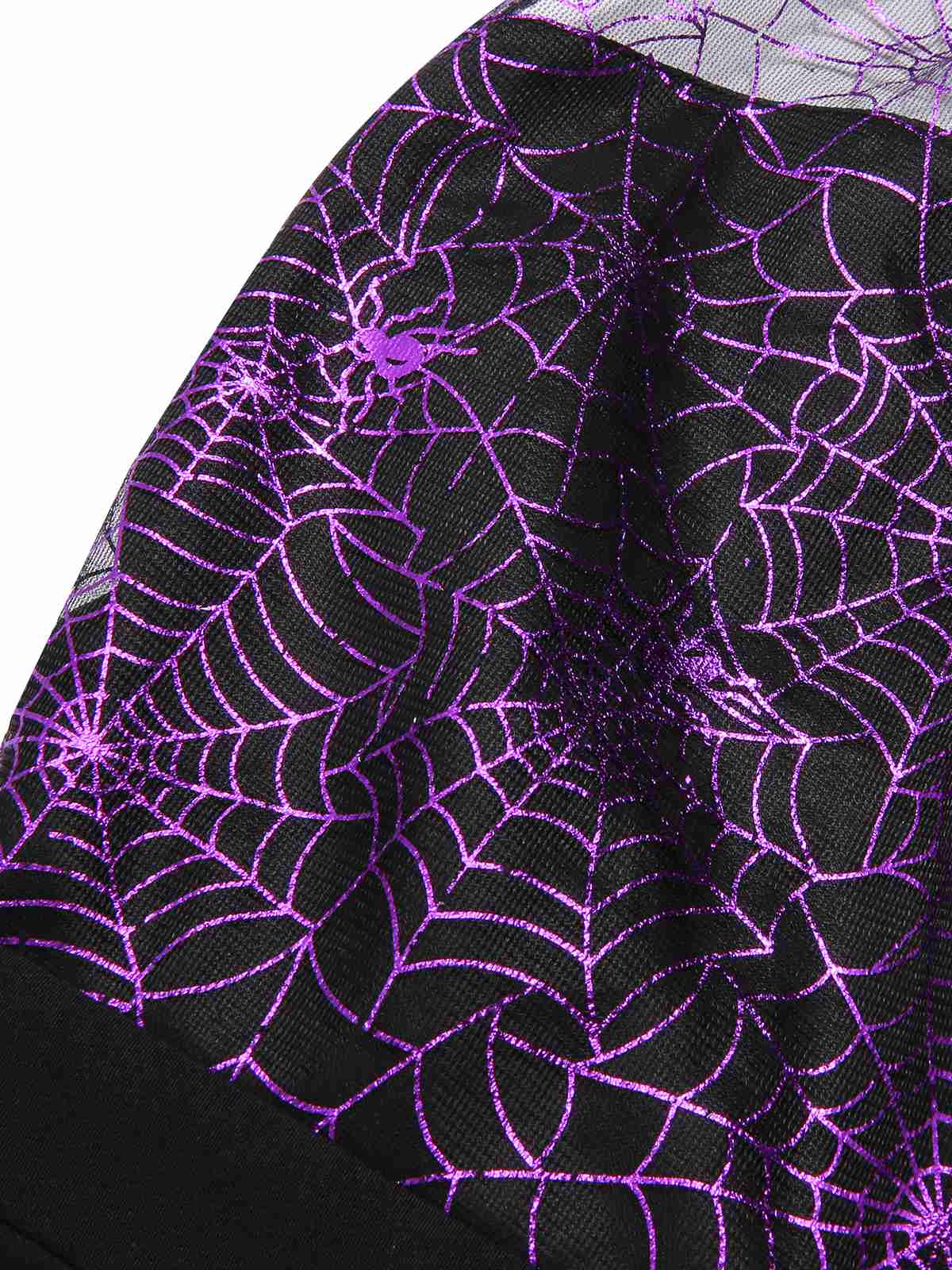 2PCS Black & Purple 1950s Spiderweb Mesh Romper & Skirt Cover-Up