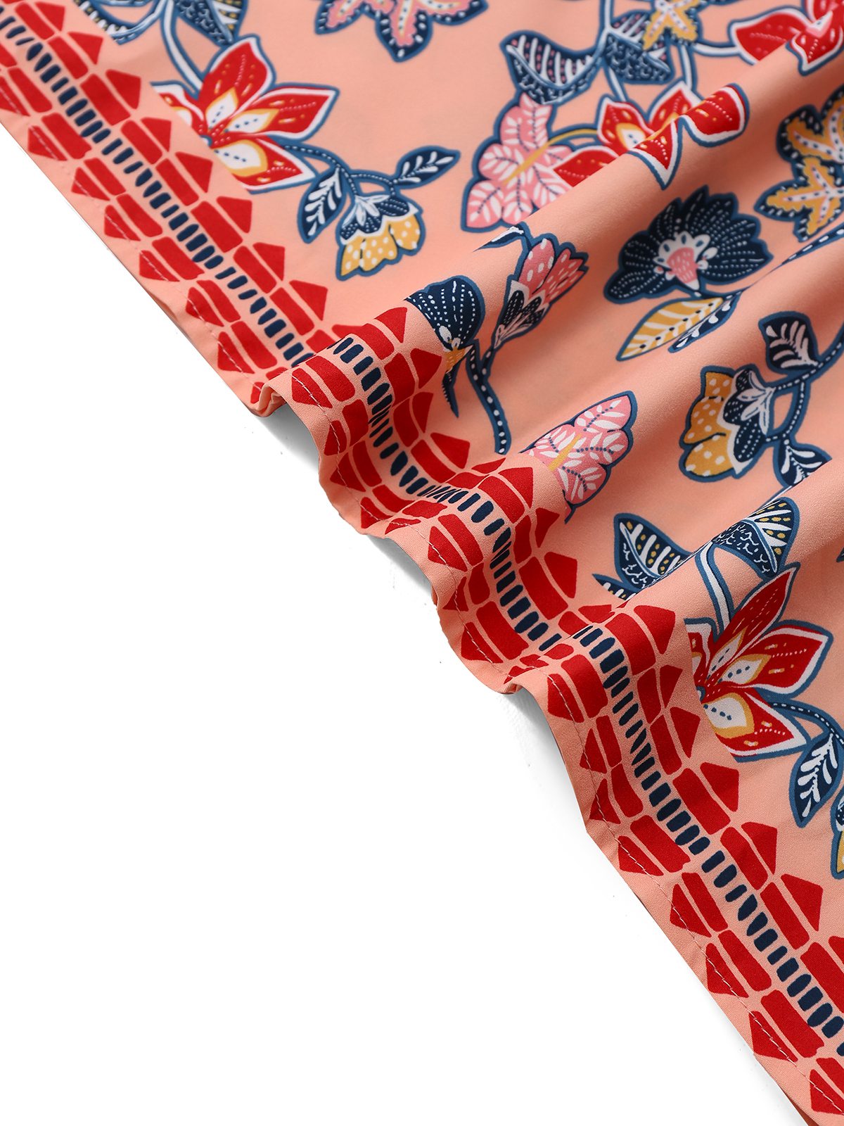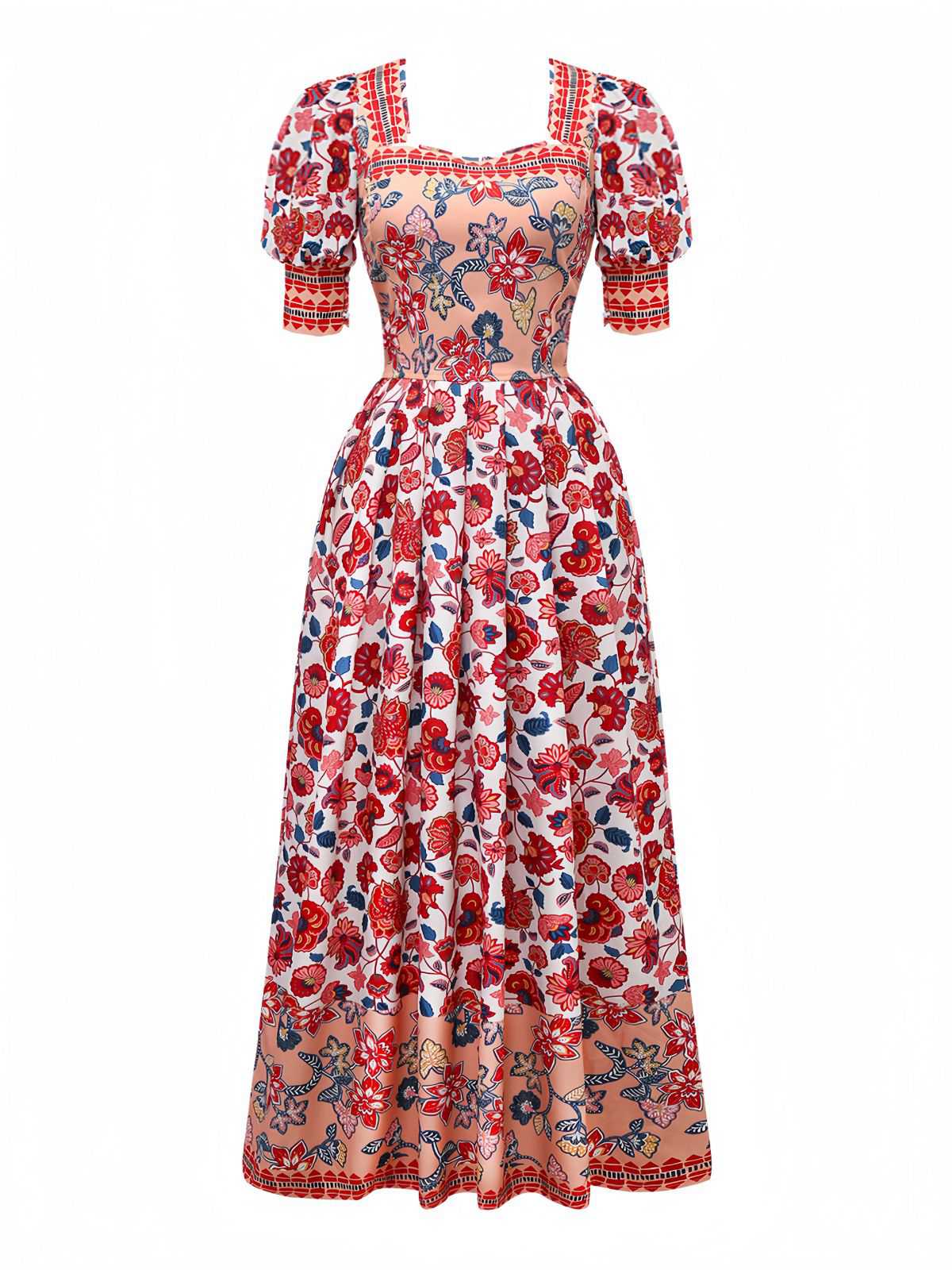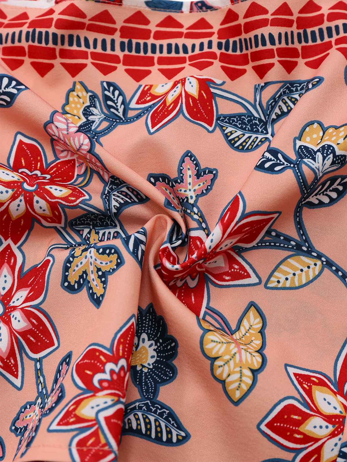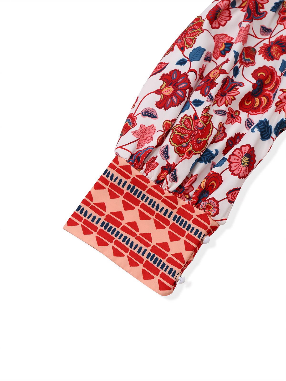 2PCS Red 1930s Floral Lantern Sleeve Cutout Top & Ruched Skirt