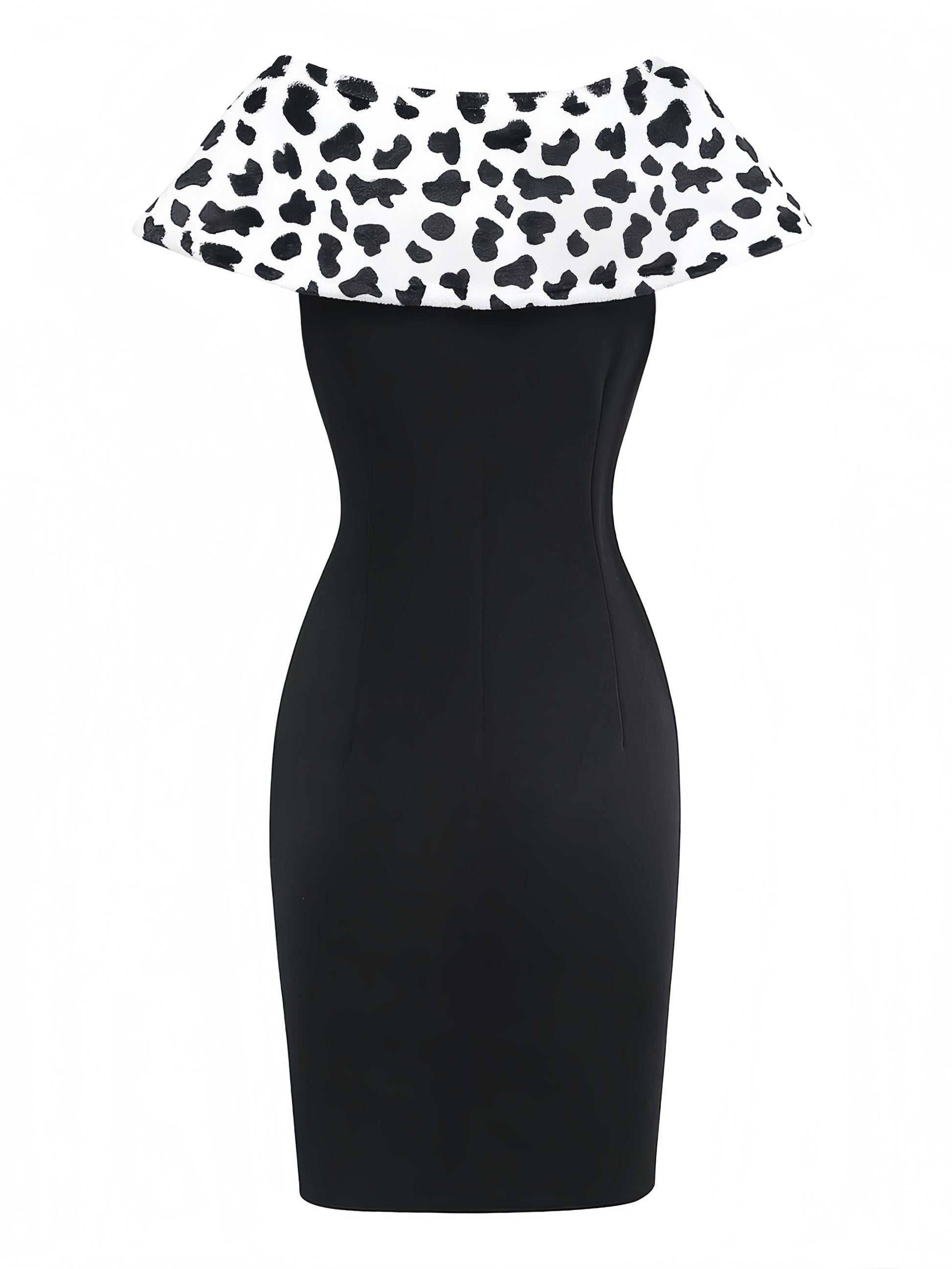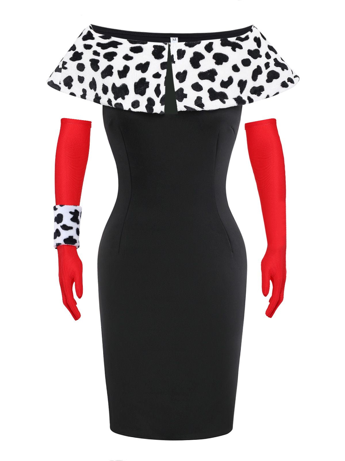 2PCS White & Black 1960s Cruella Dalmatian Dress & Cape