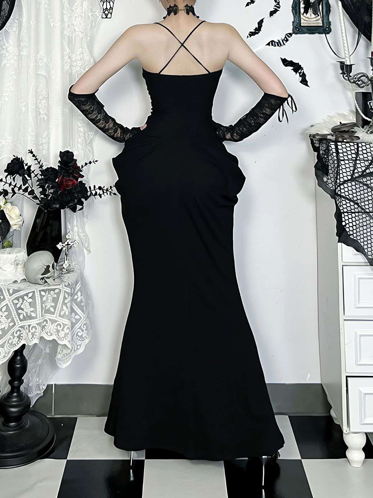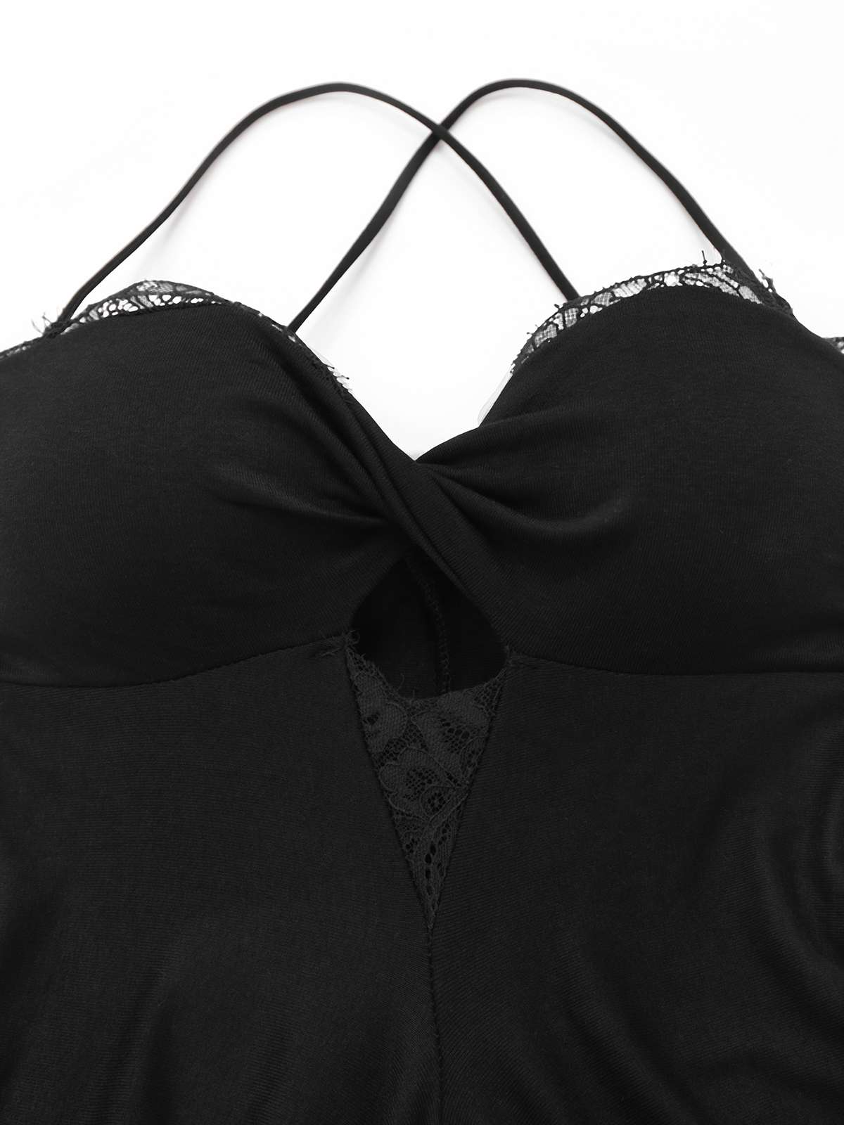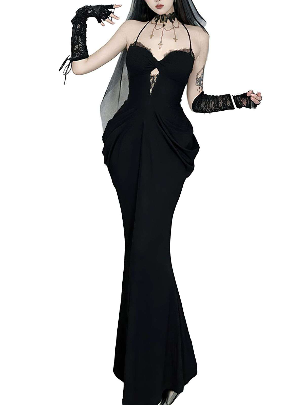 Black 1930s Lace Trimmed Halter Maxi Dress