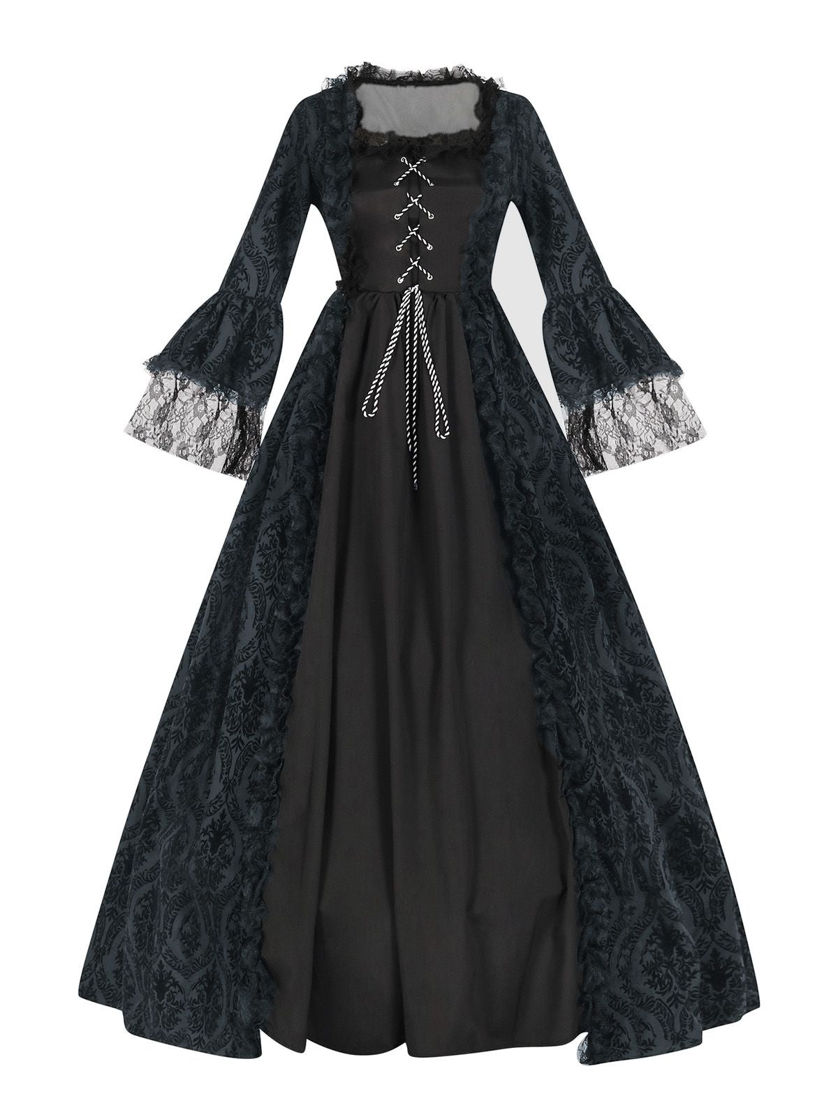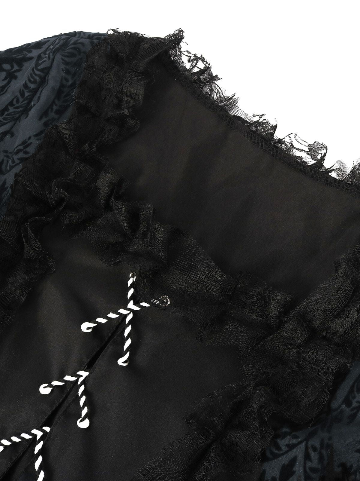 Black 1950s Gothic Victorian Lace Bell Sleeves Dress