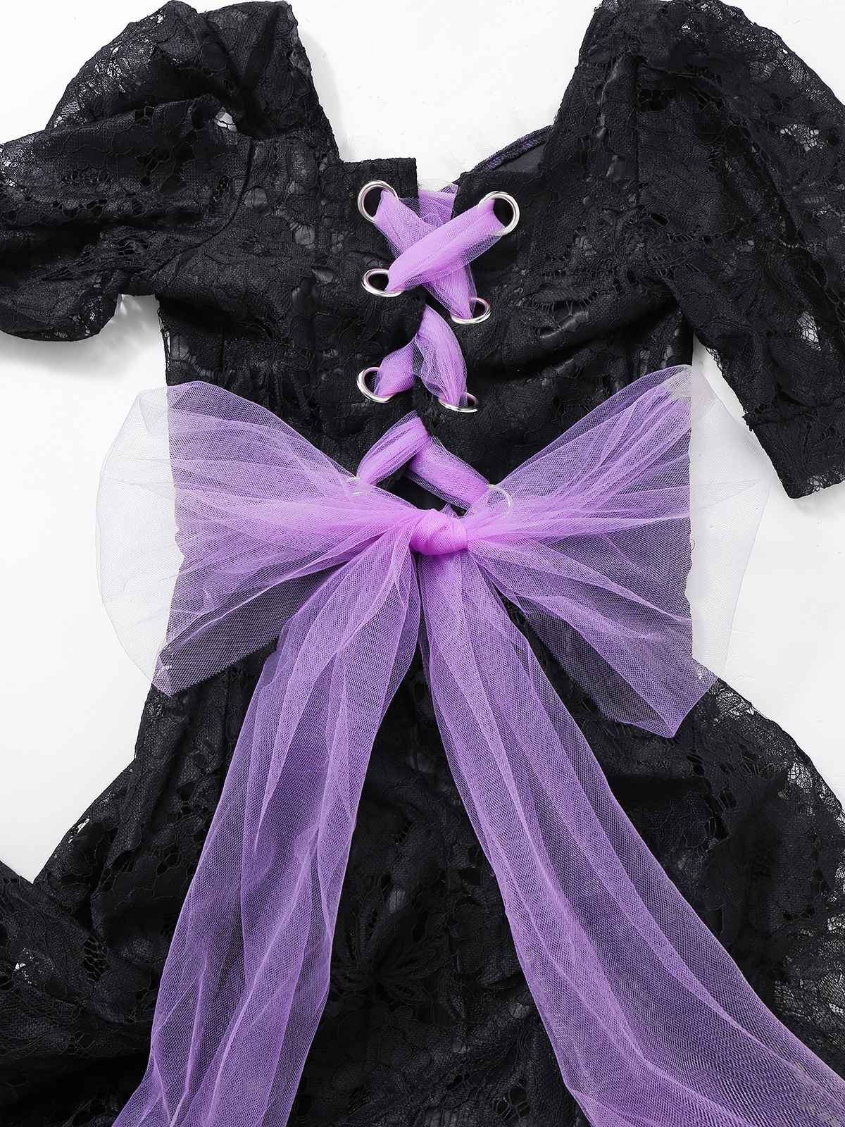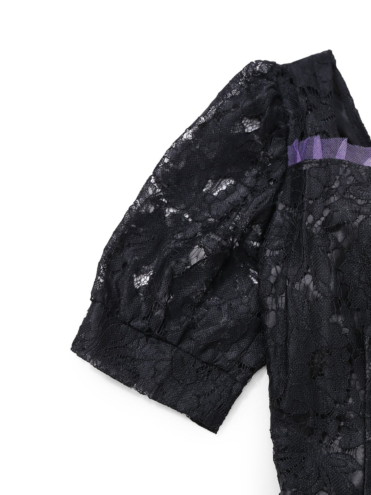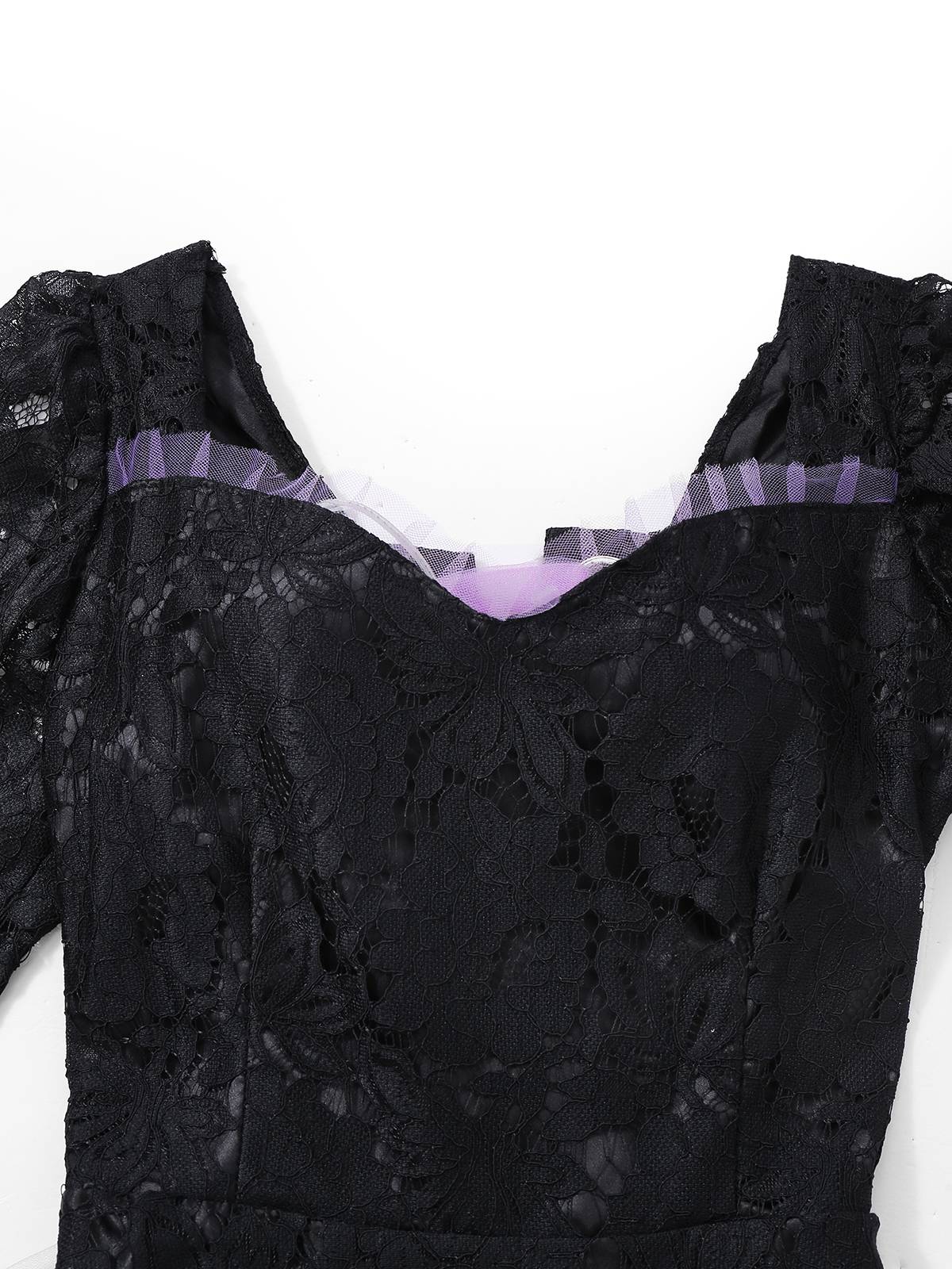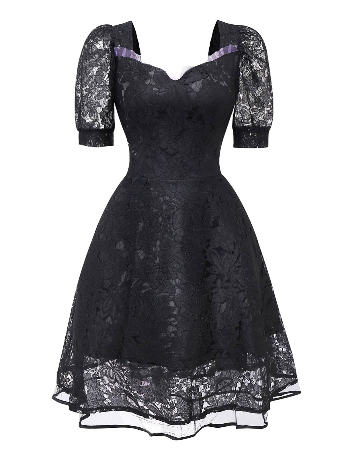 Black 1950s Gothic Witch Bride Lace Embroidered Dress