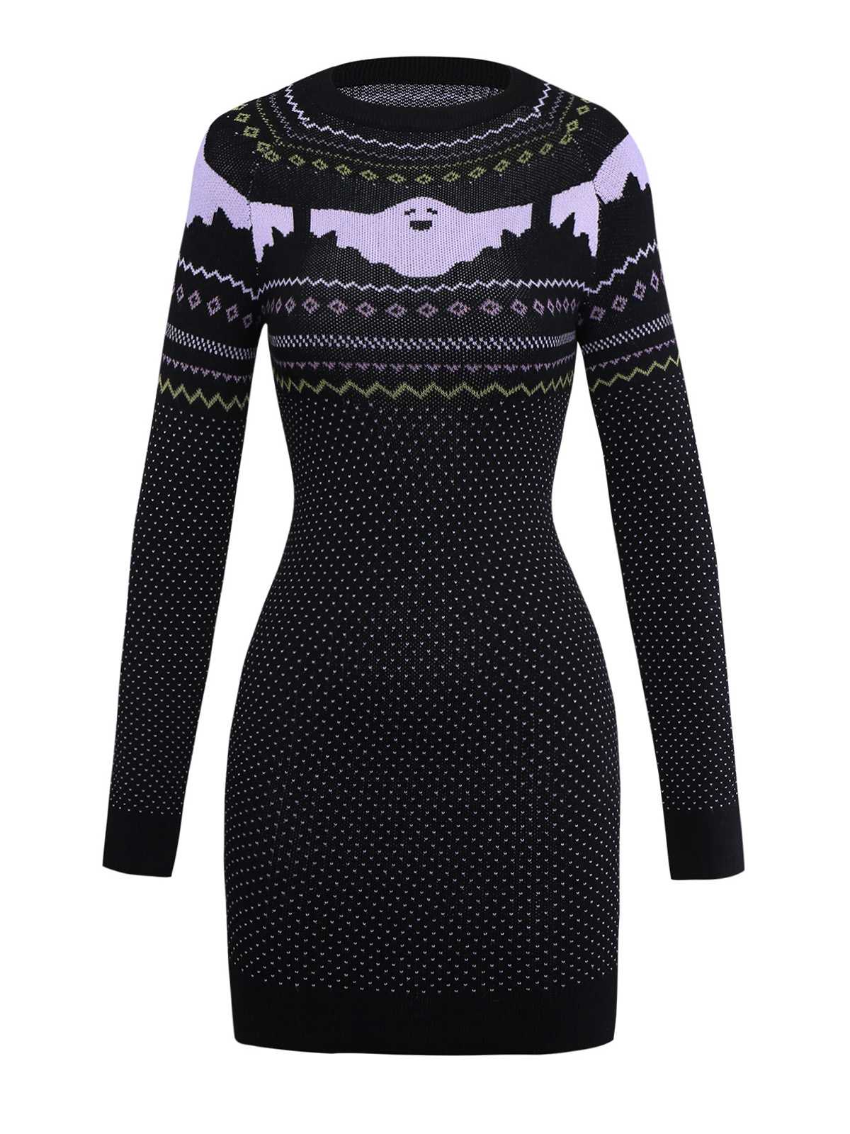 Black 1960s Dots Halloween Ghost Sweater Dress