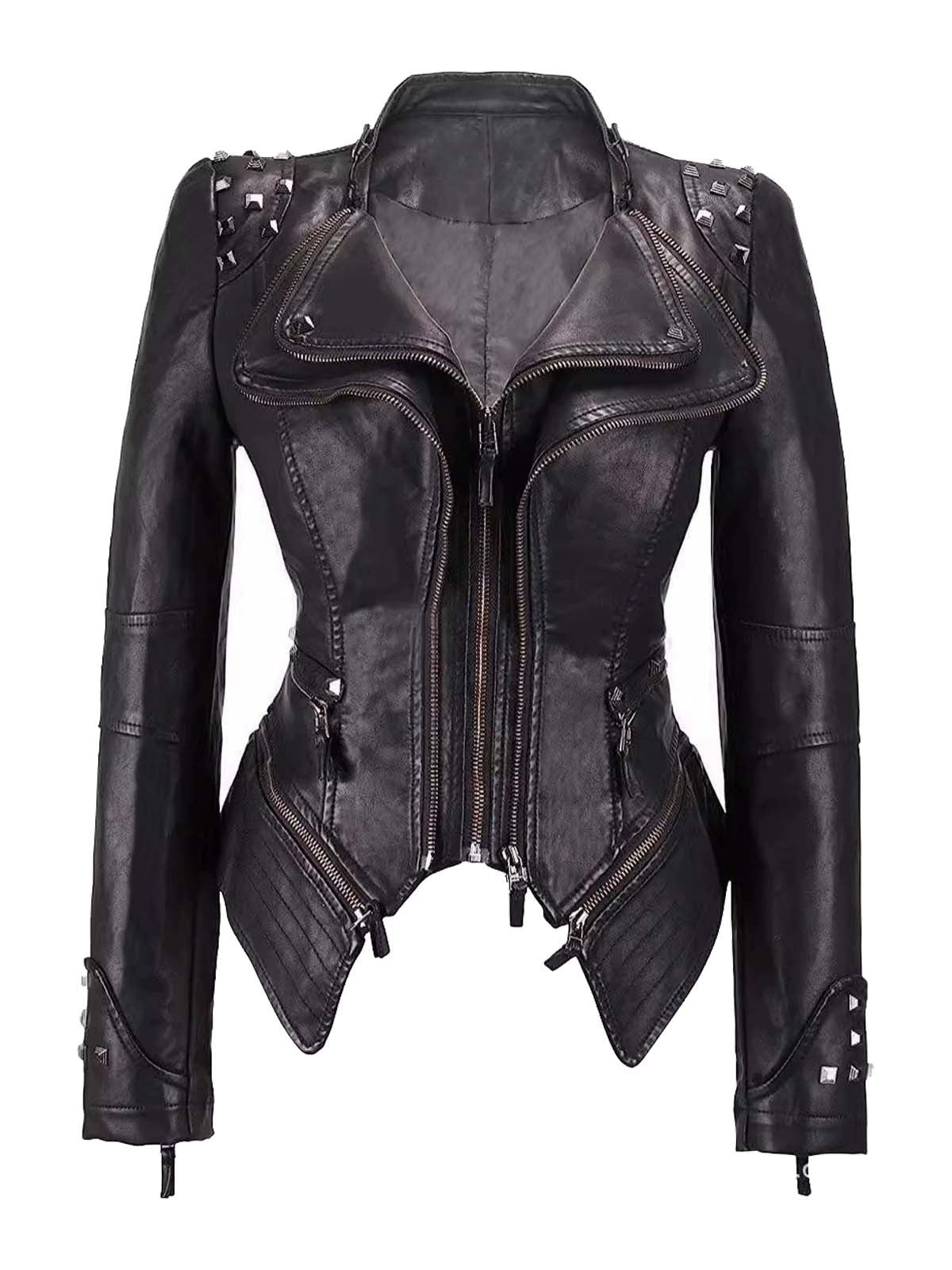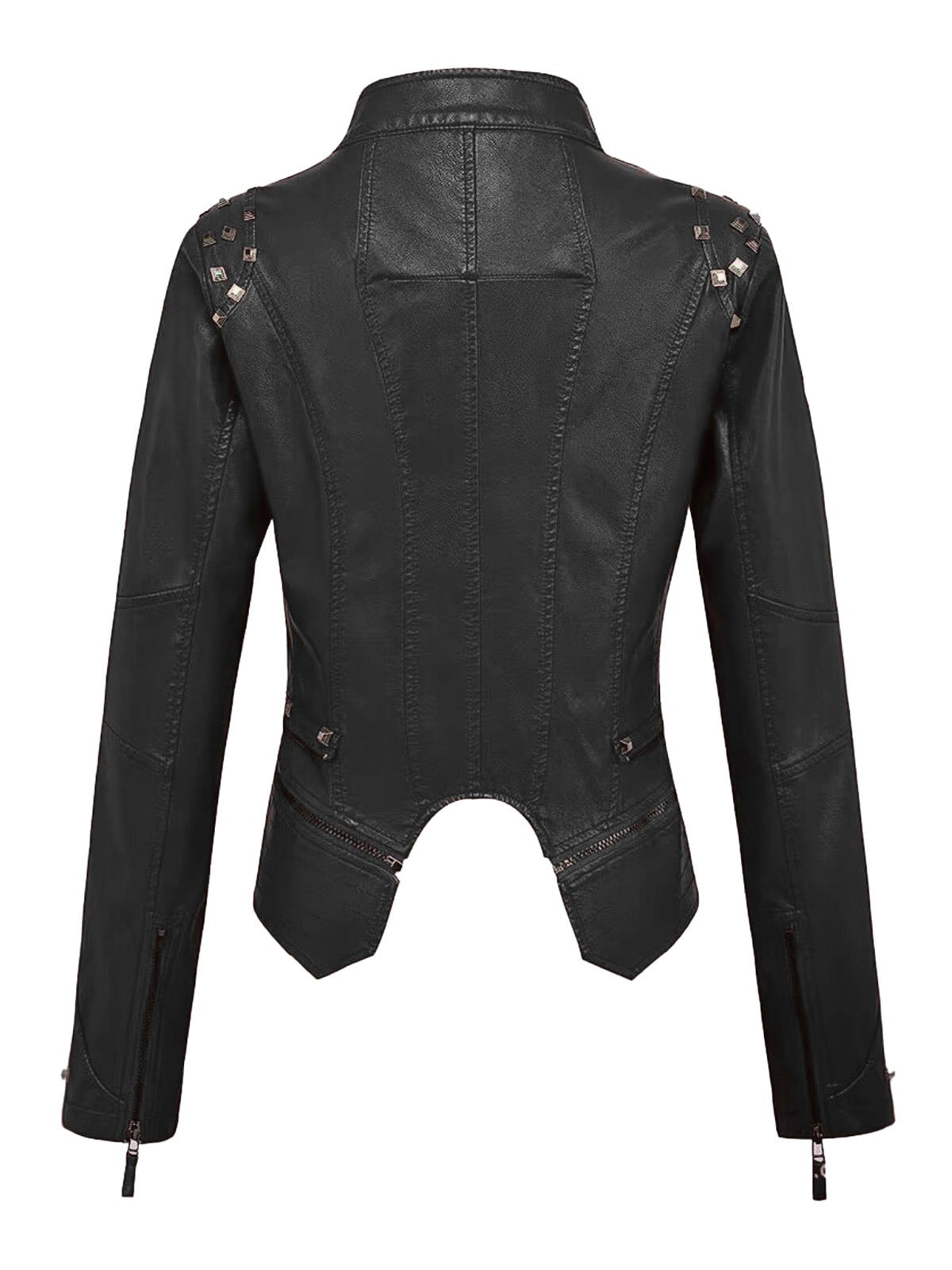 Black 1980s Irregualr Hem Rivet Motocycle Jacket