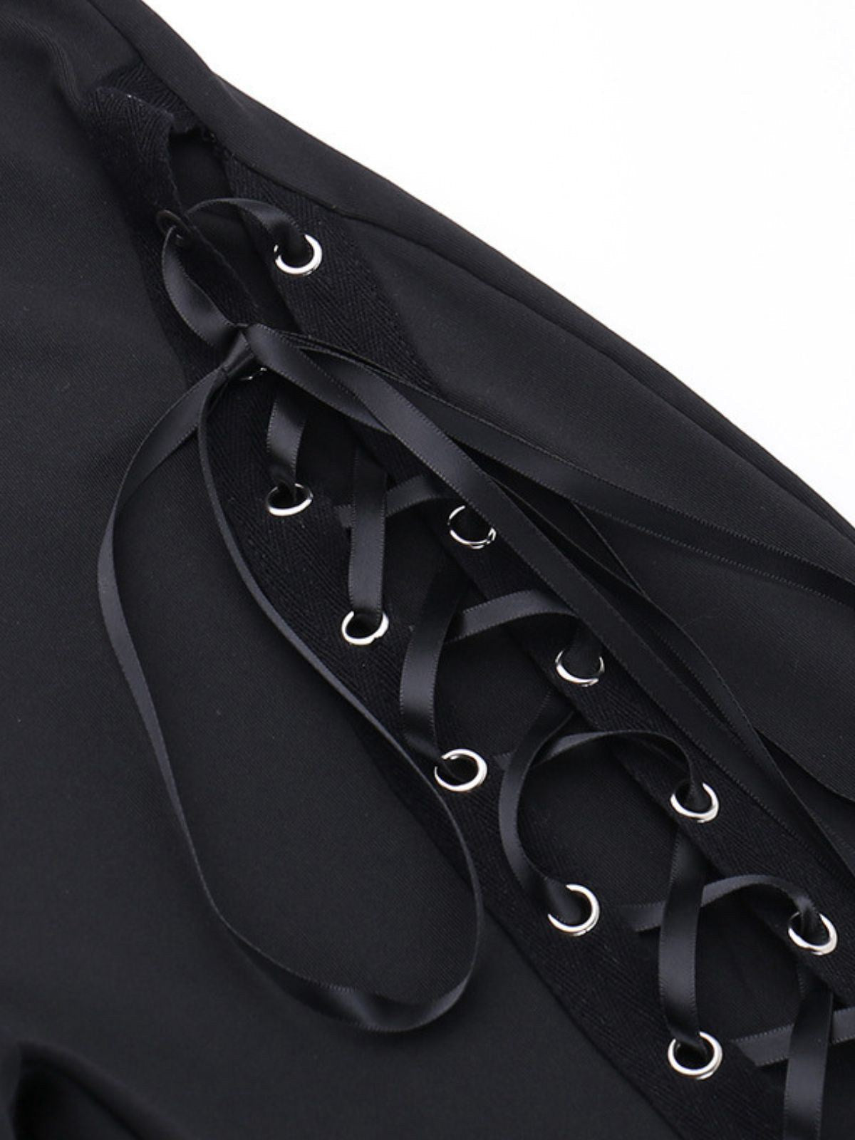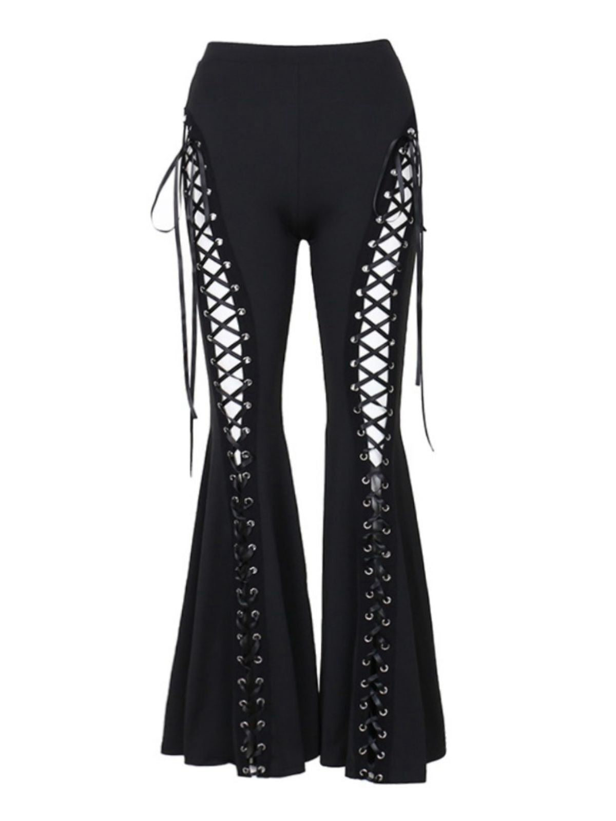 Black 1980s Punk Drawstring Laced Bootcut Pants