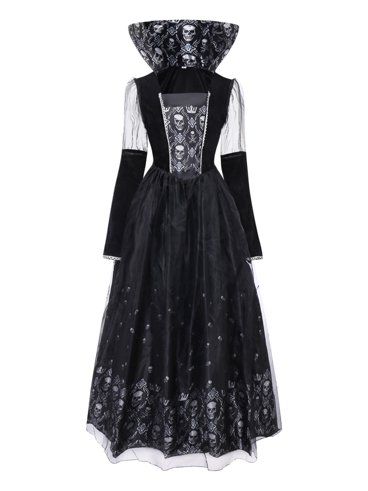 Black 1980s Queen Skull Long Sleeve Mesh Dress