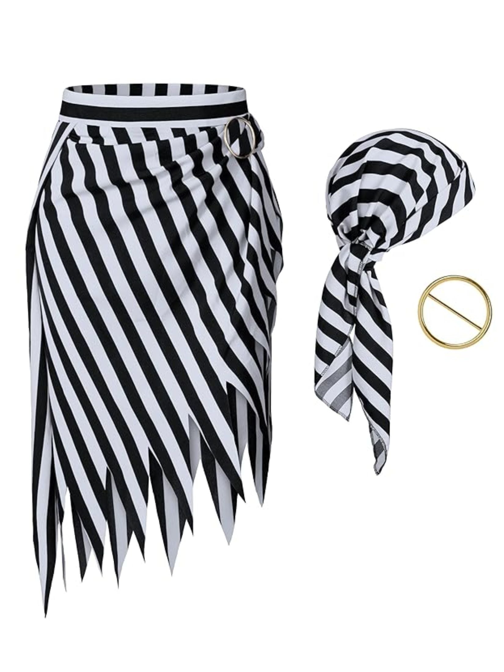 Black&White 1960s Striped Skirt With Headscarf