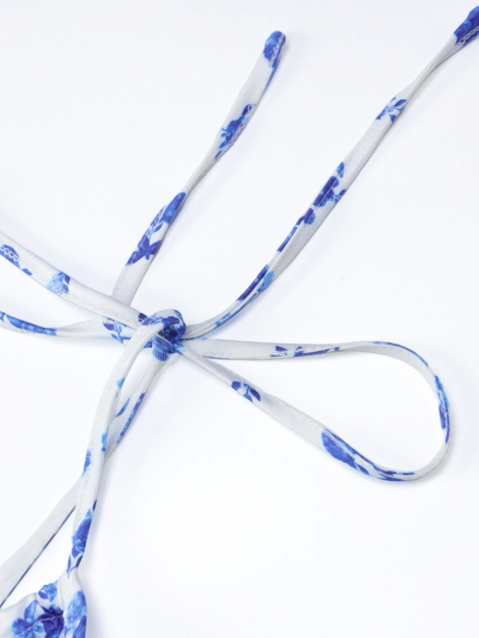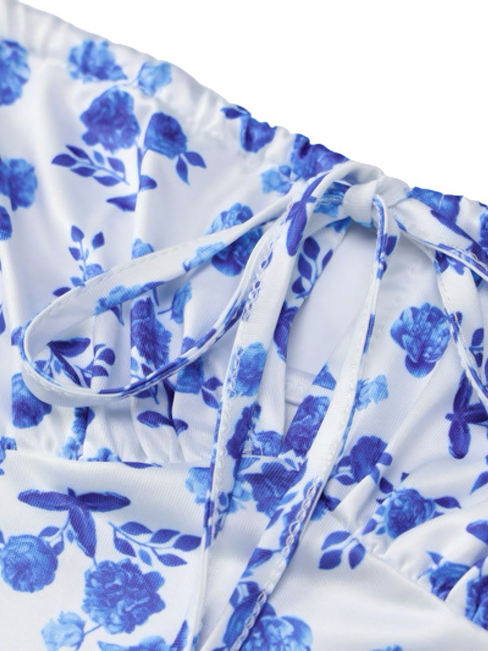 Blue 1930s Ditsy Floral Spaghetti Strap Fishtail Dress