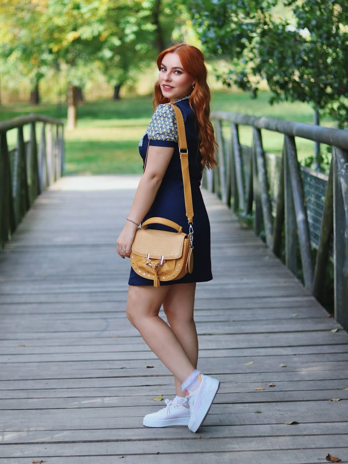 Blue 1960s Peter Pan Collar Diamond-Print Dress