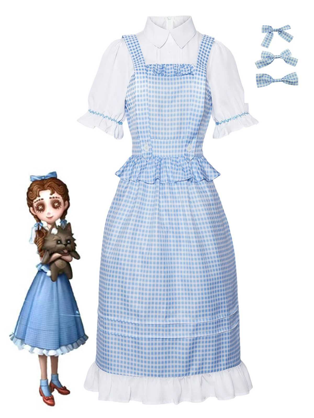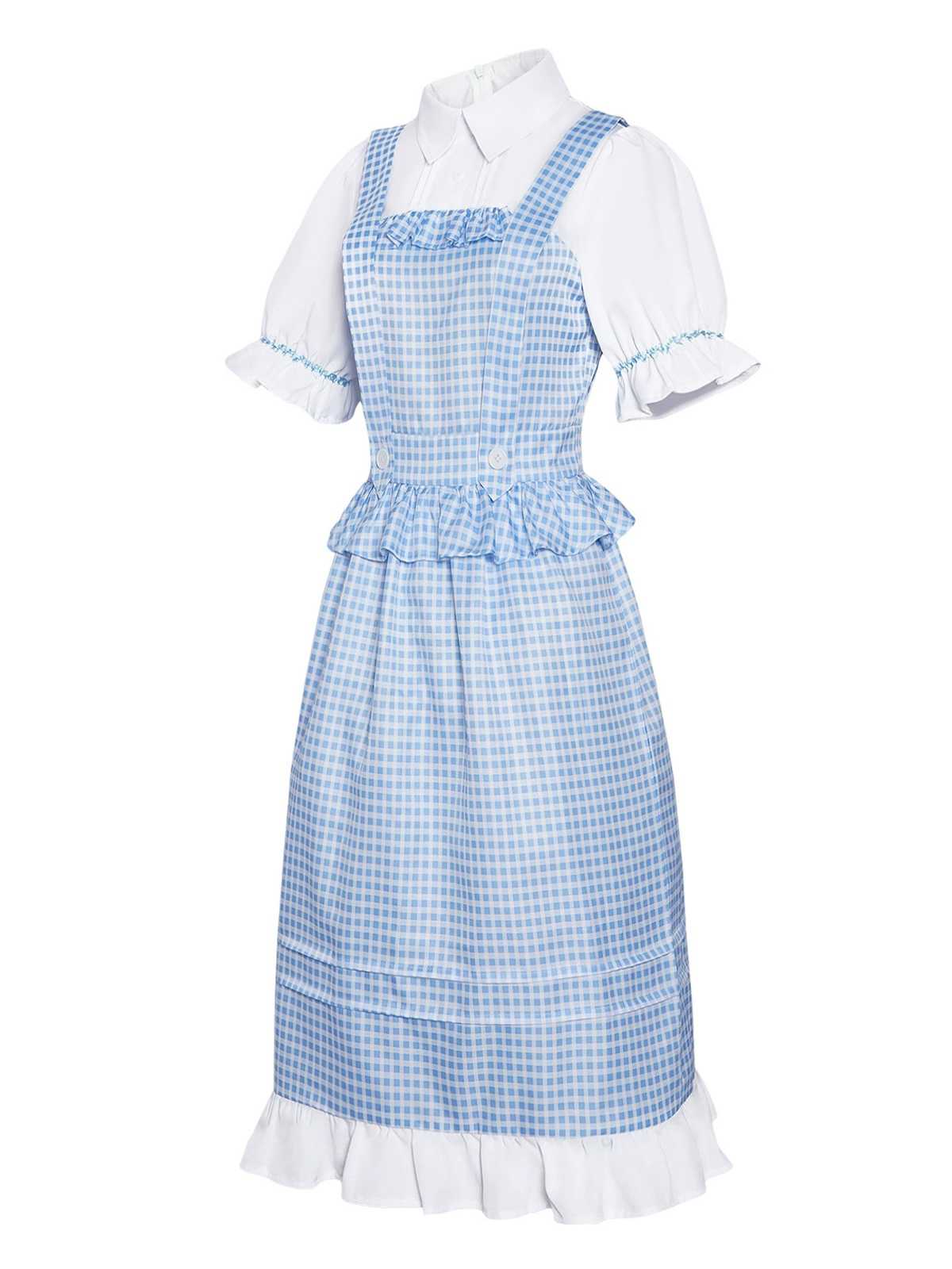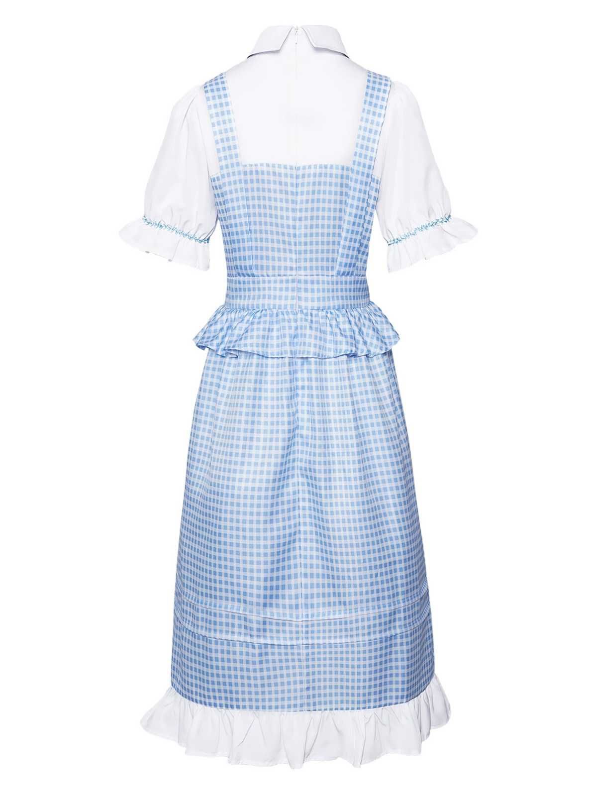 Blue 1970s Gingham Ruffle Puff Sleeve Costume Dress