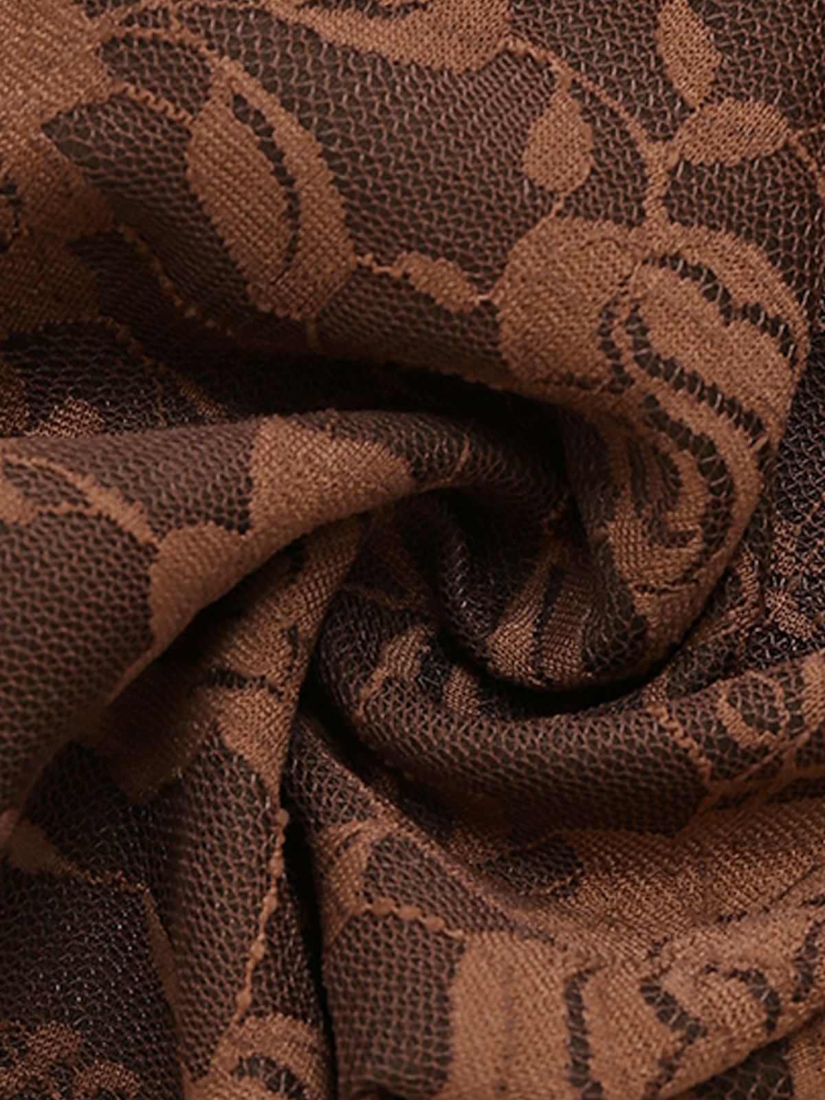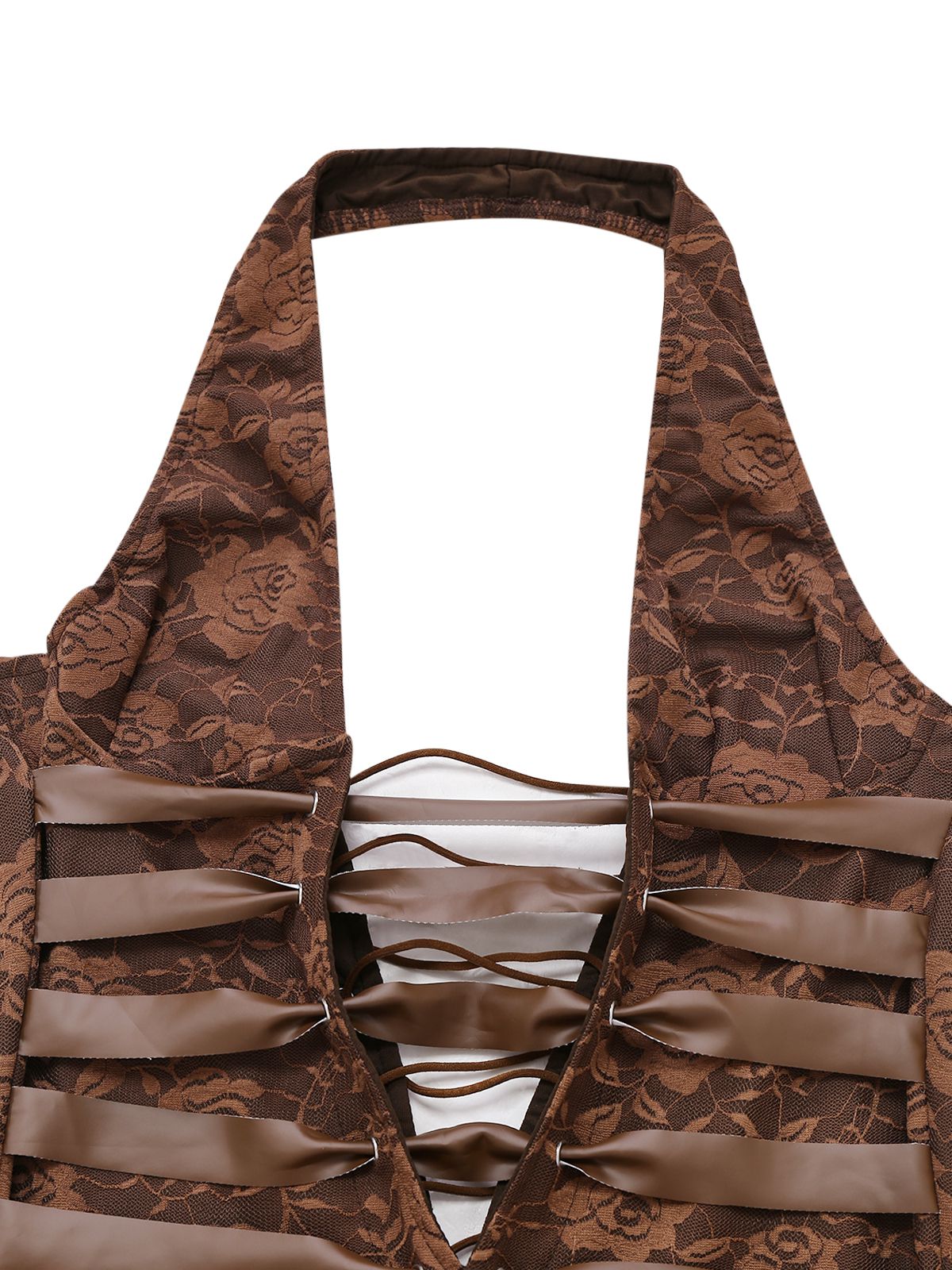Brown 1970s Solid Lace-Up Floral Lace Jumpsuit