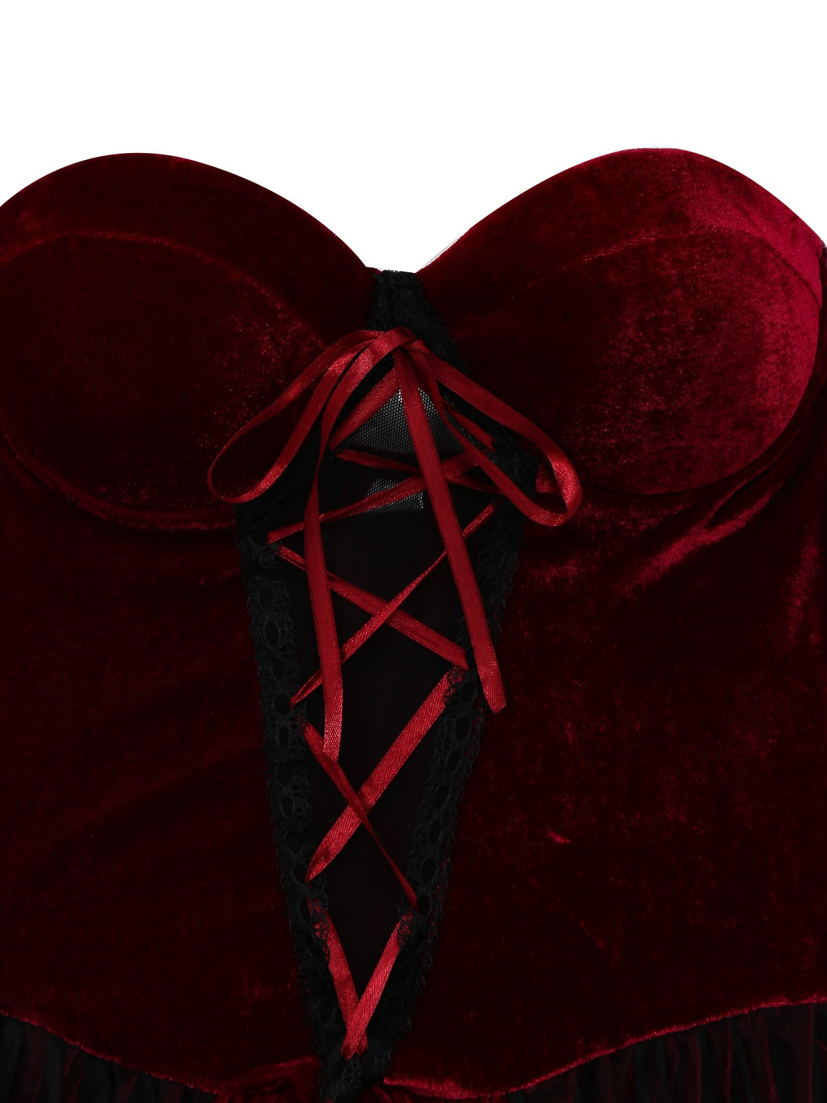 Burgundy 1960s Gothic Mesh Strapless Irregular Hem Dress