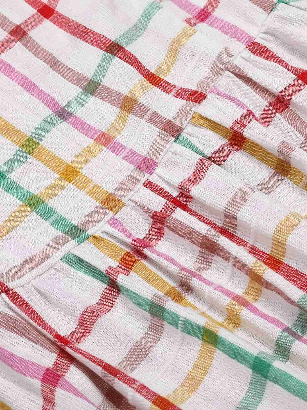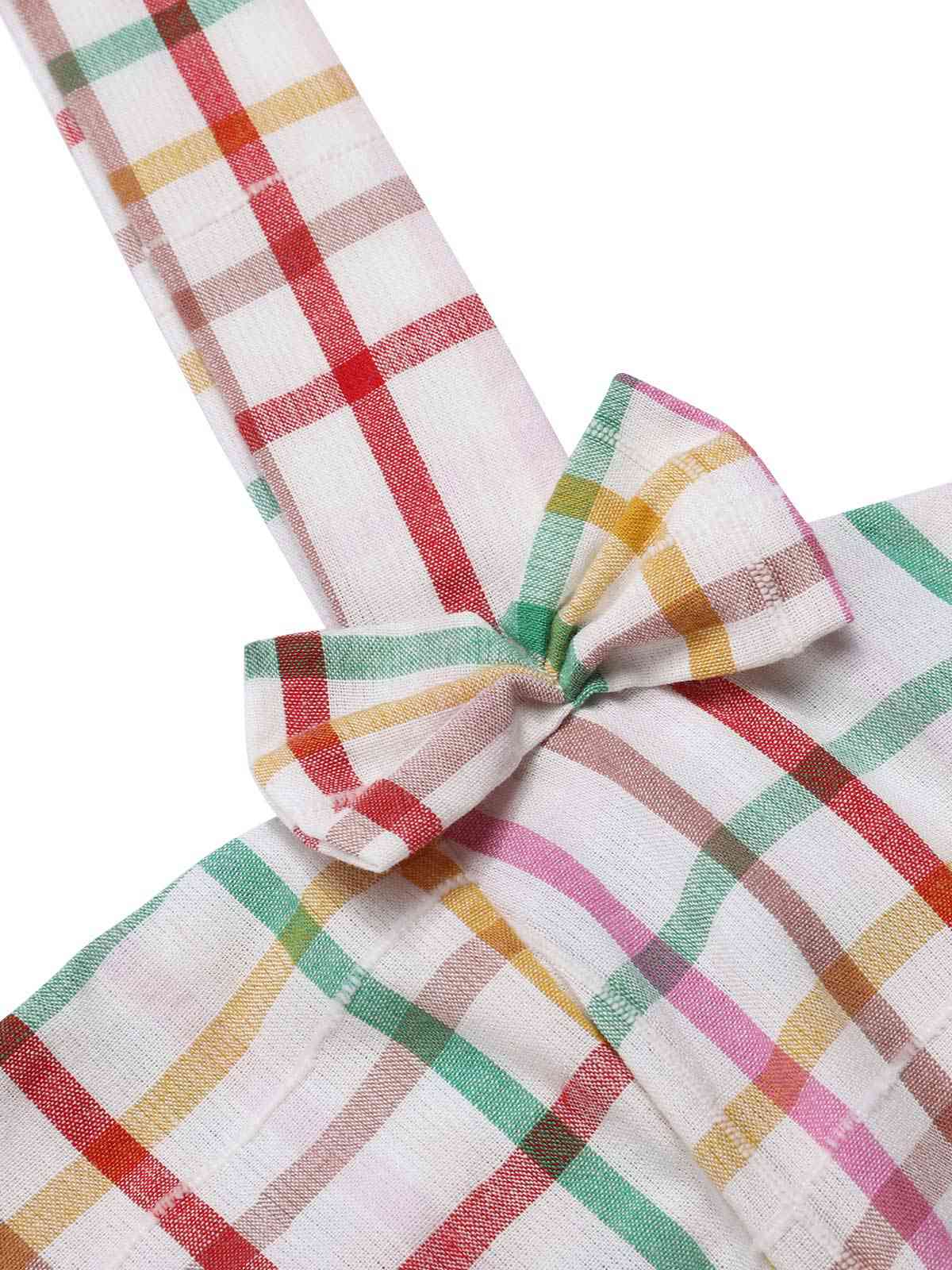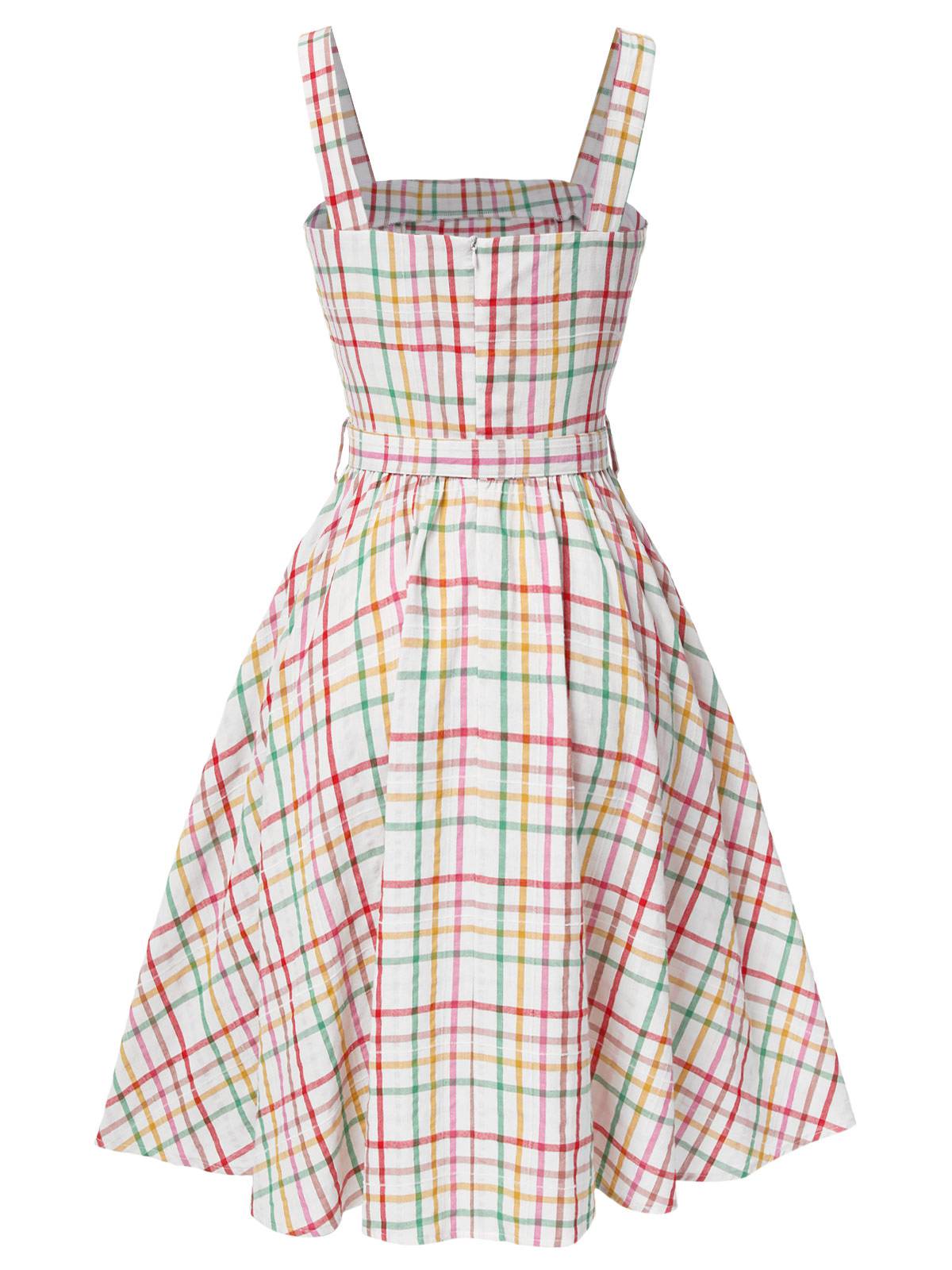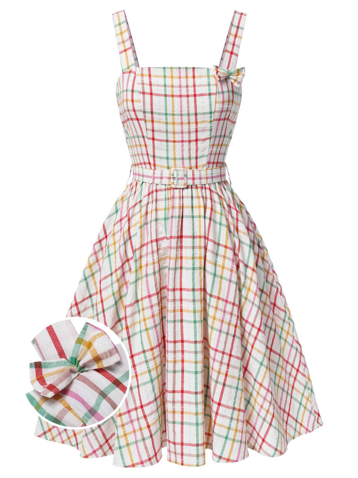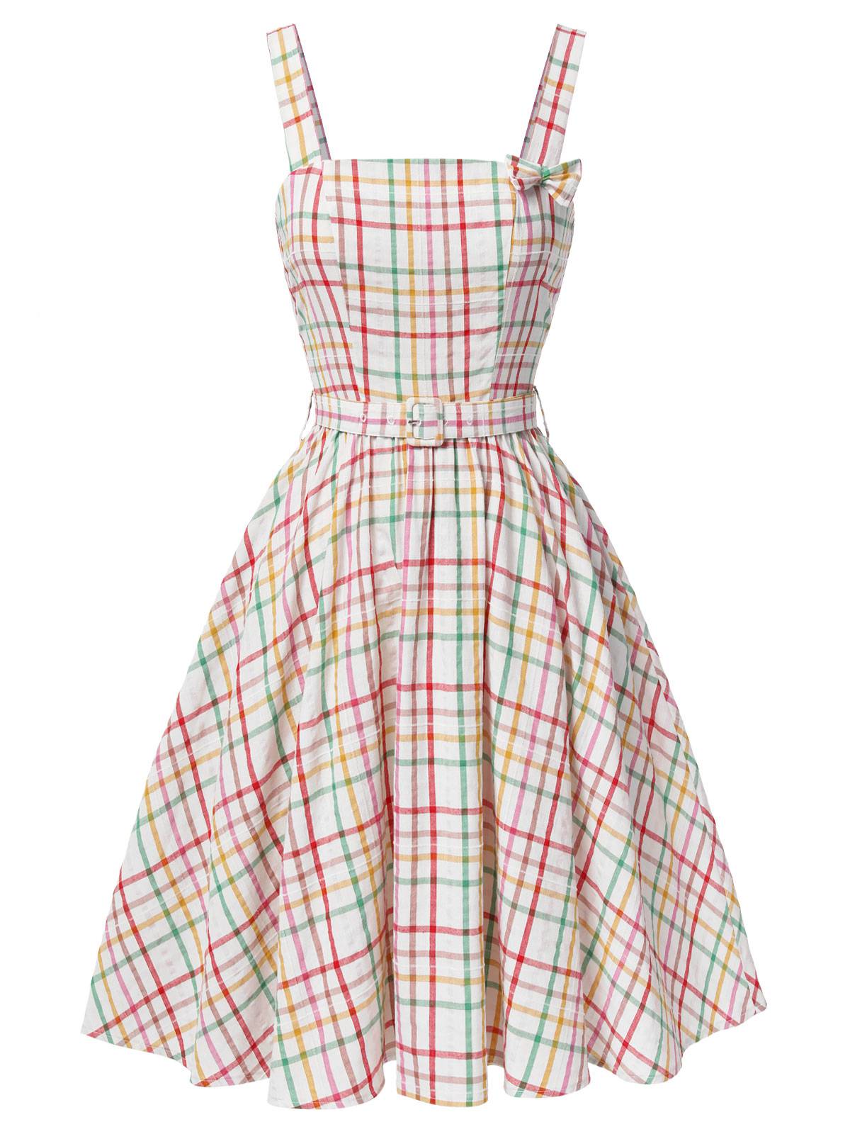 Colorful 1950s Wide Strap Bow Plaid Dress