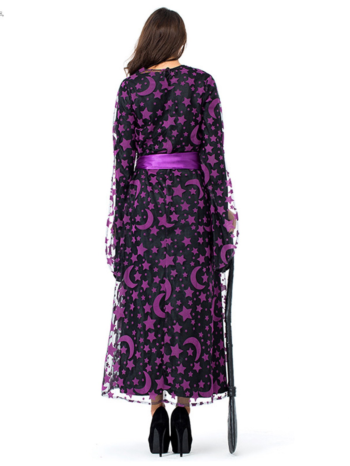 Deep Purple 1930s Star & Moon Batwing Sleeve Witch Dress Set