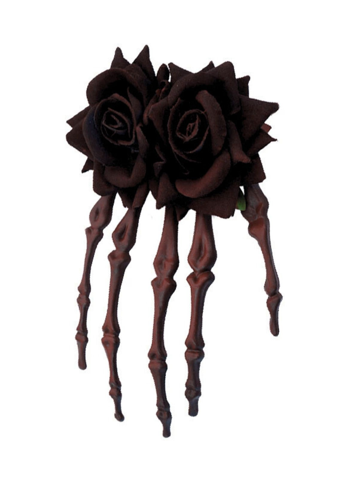 Deep Red Vintage Rose Skeleton Hand Hairpin