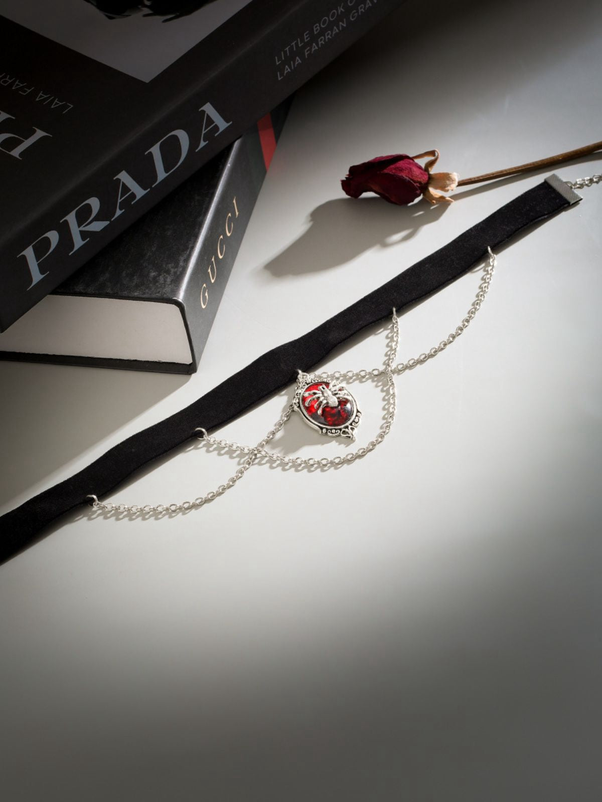 Gothic Spider Red Gemstone Pendant Chain Choker Necklace