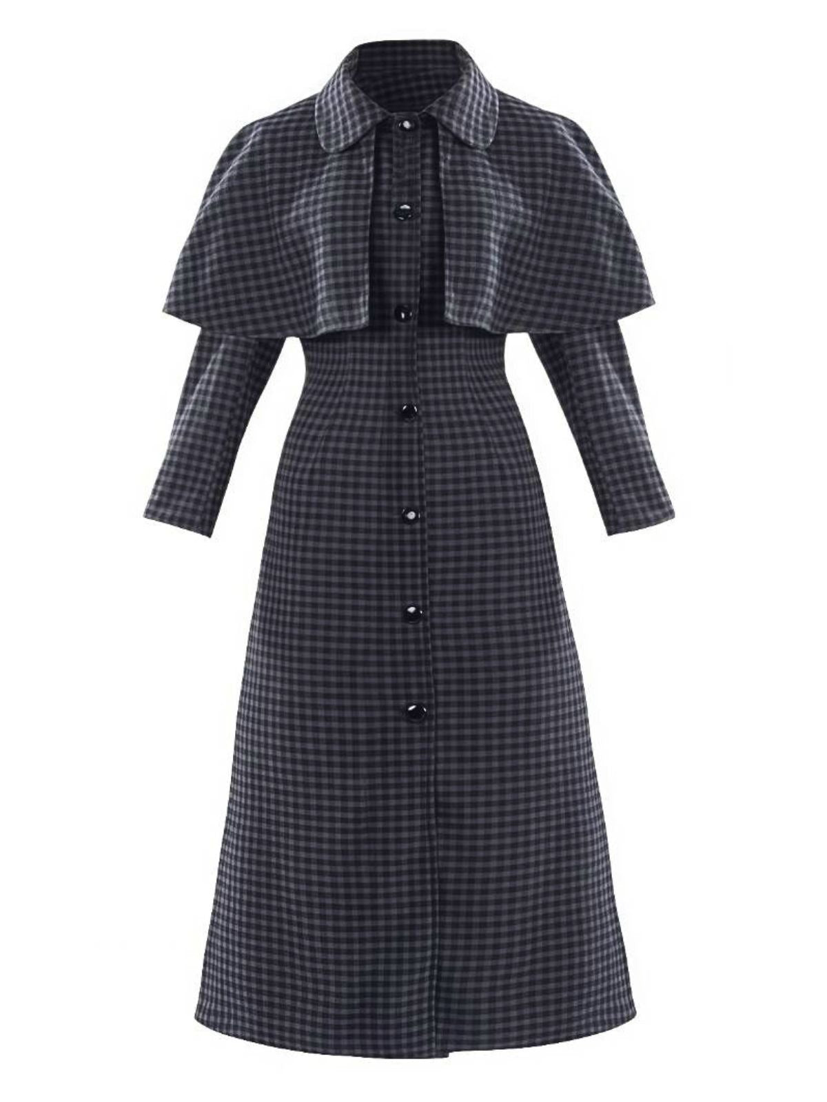 Gray 1950s Halloween Wednesday Plaid Faux-Wool Cape Coat