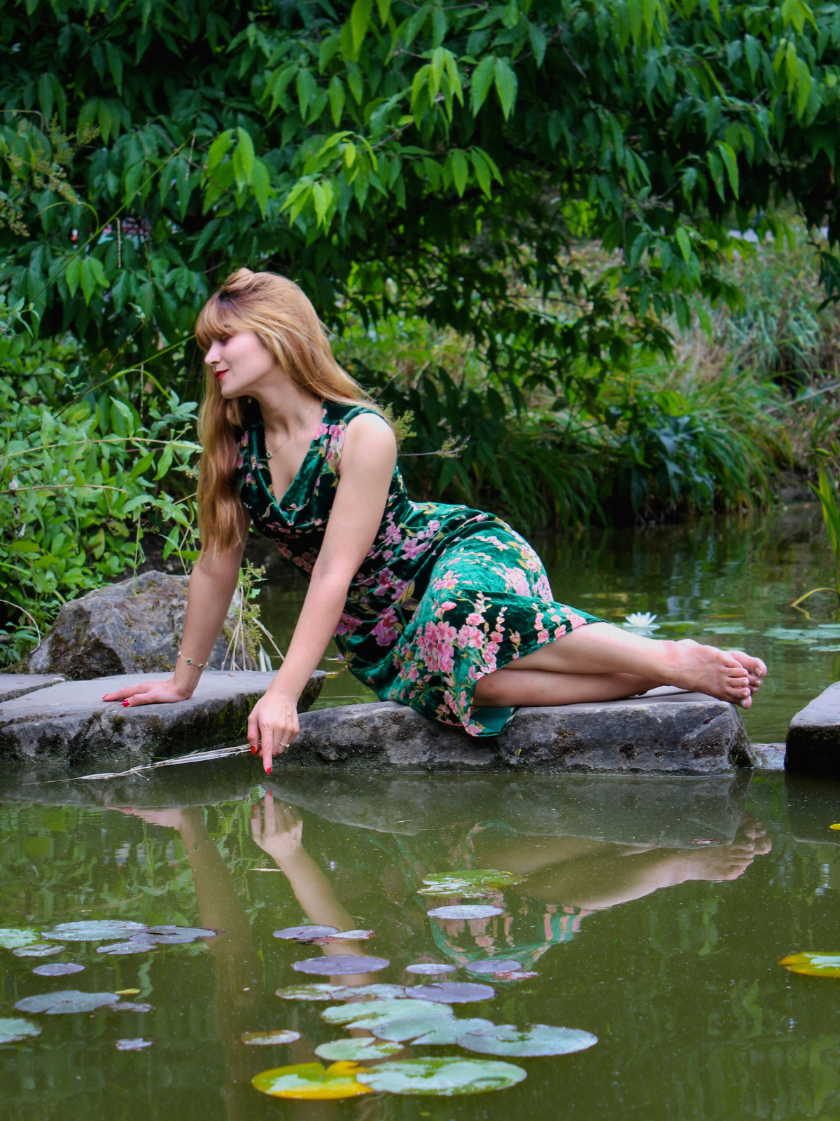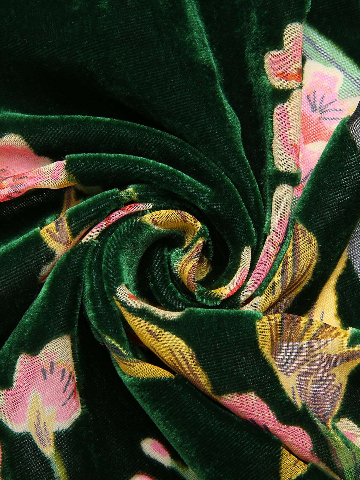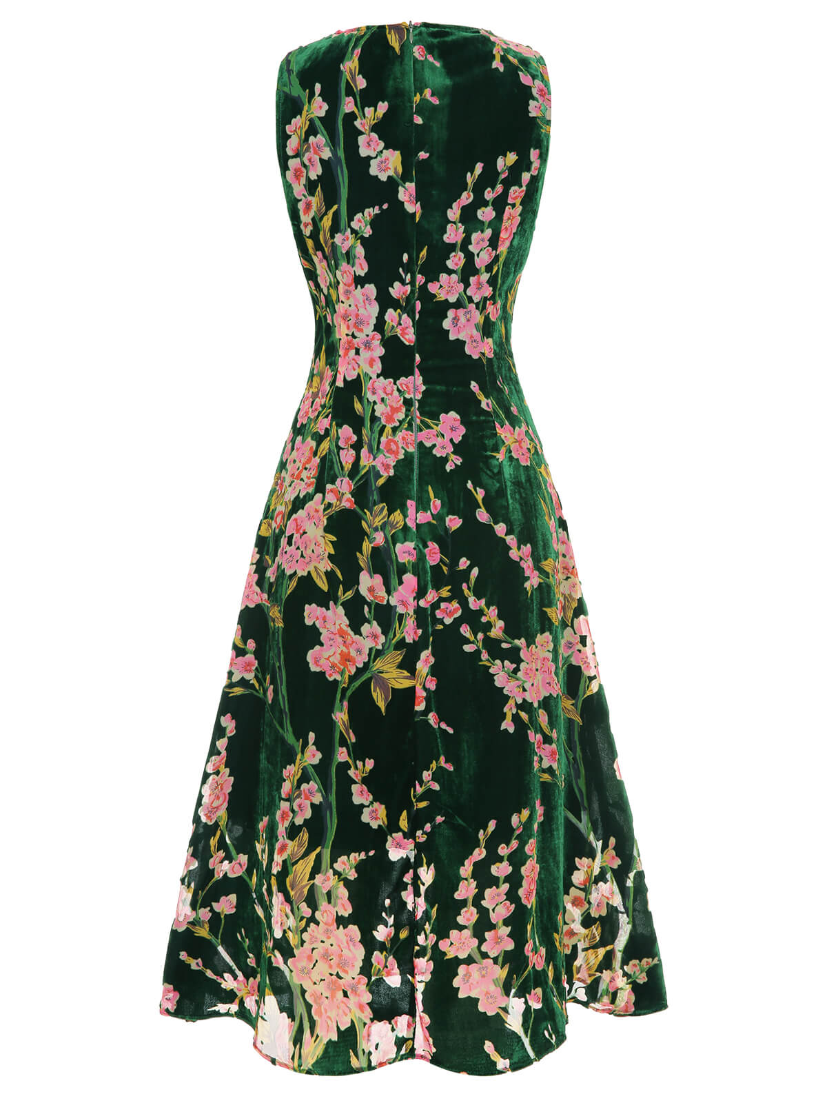 Green 1930s Floral Velvet Sleeveless Dress