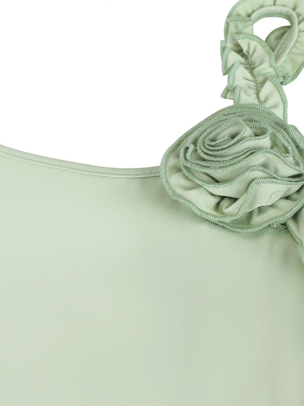 Green 1930s Spaghetti Strap 3D Flower Maxi Dress