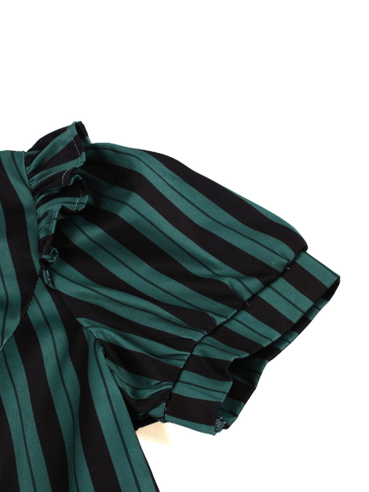 Green 1950s Striped Peter Pan Collar Swing Dress