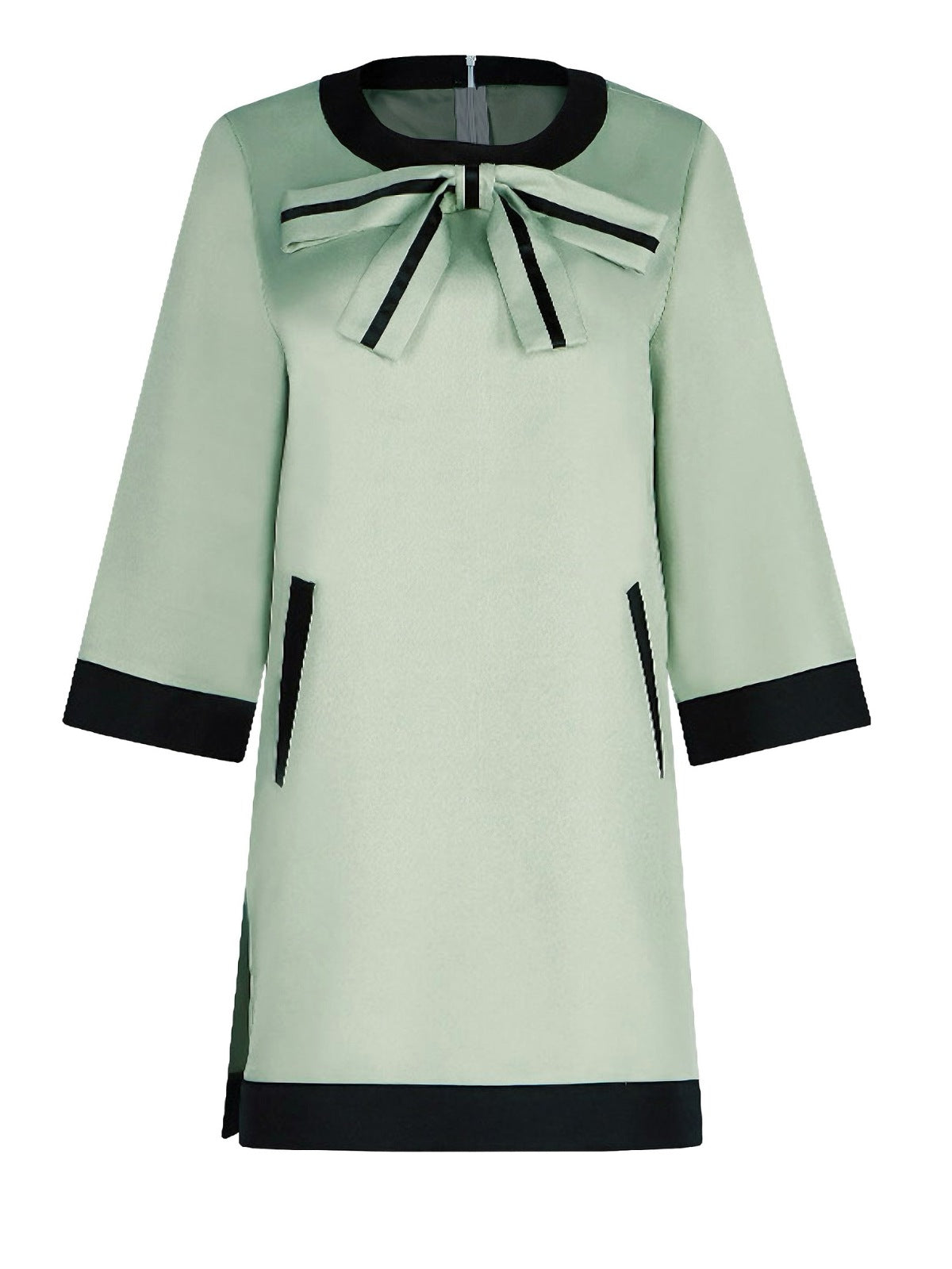Green 1970s The Queen's Gambit Bow A-Line Dress